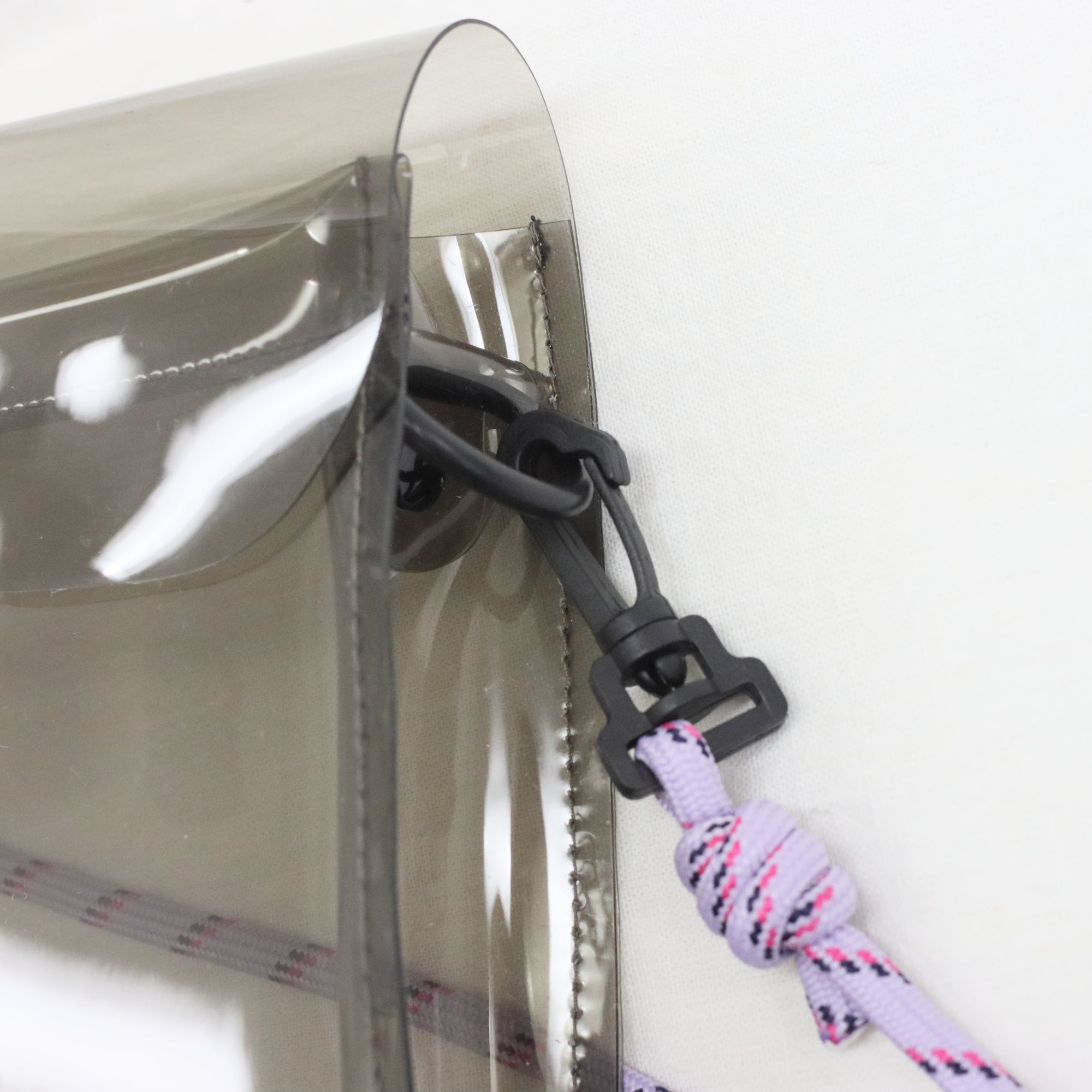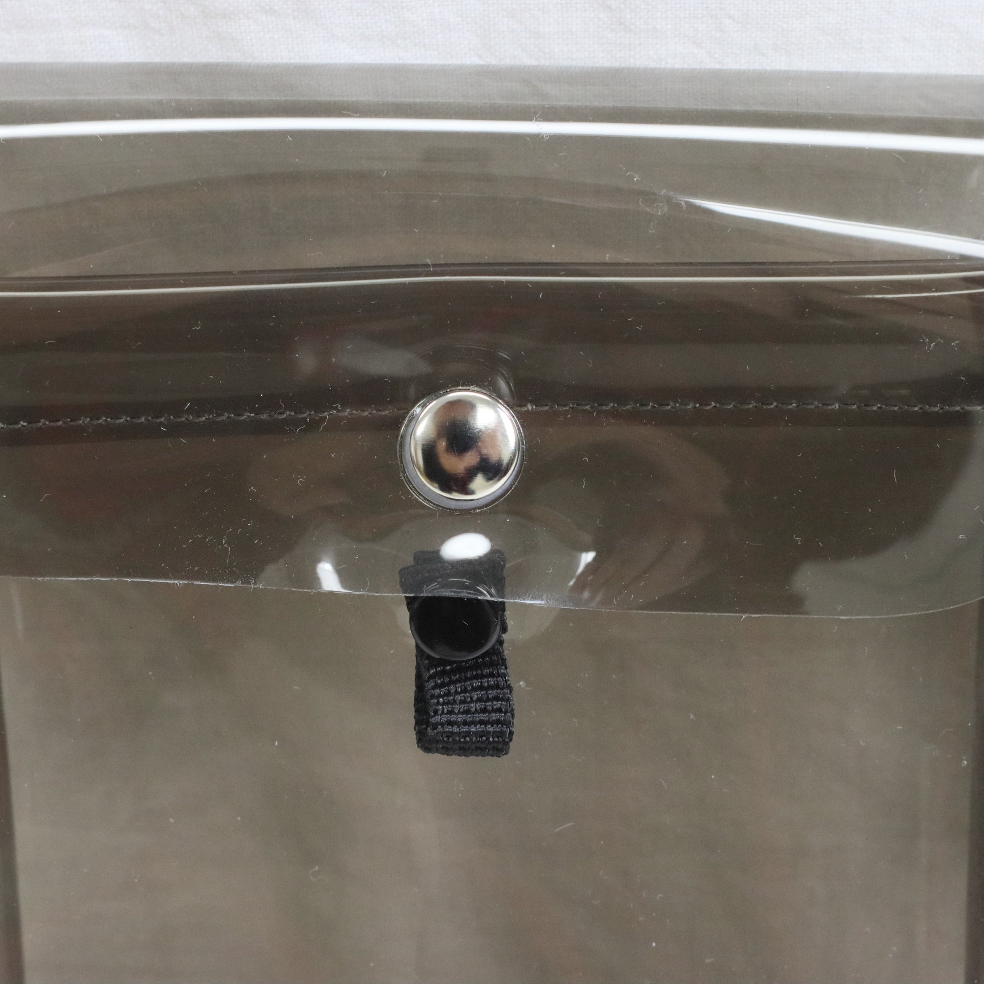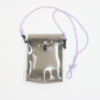 ブラックのクリア素材にパープルのストラップが大人可愛いカラーリング。軽くて持ち運びやすく、スマホや小物を入れて使えるサイズ感です。