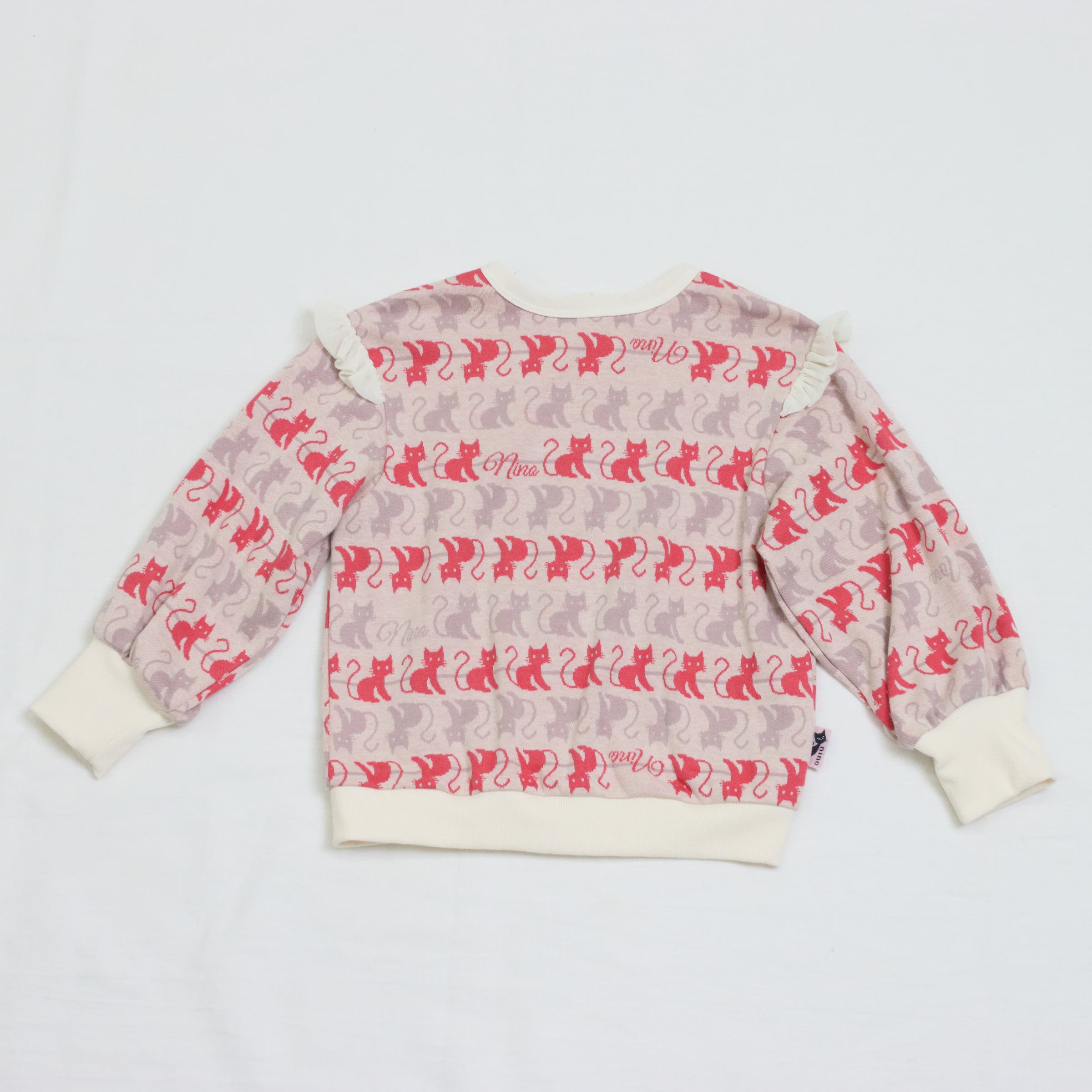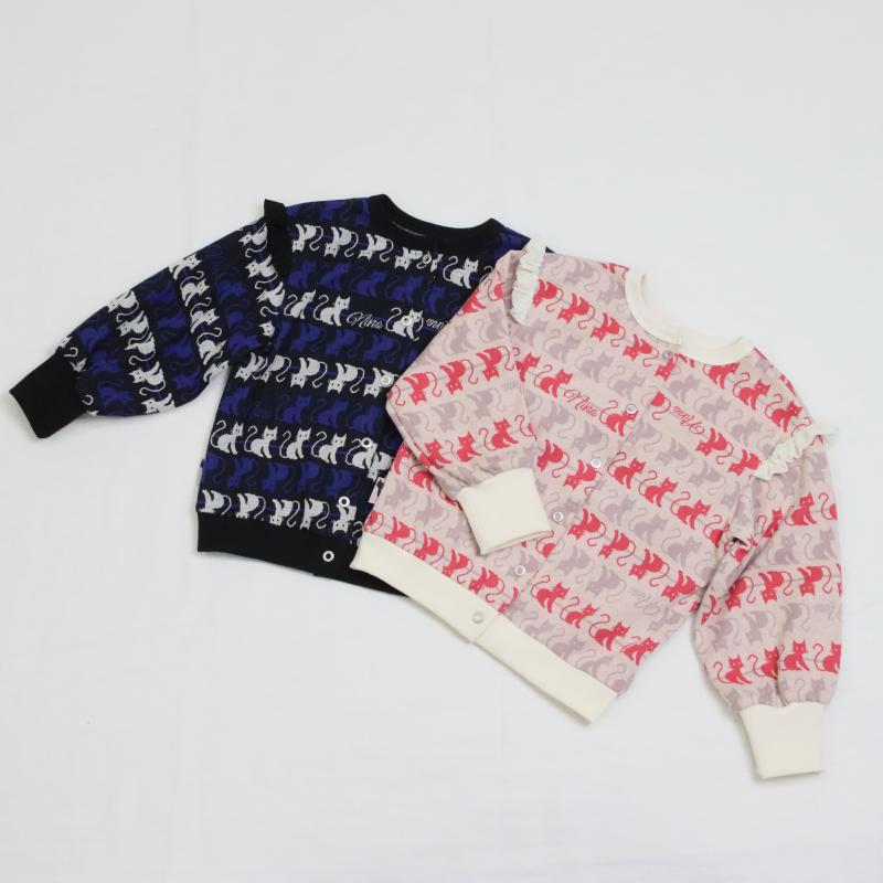 ねこボーダージャガード 2WAYプルオーバーは、ninoオリジナルカットソー生地のトレーナー長袖です。高品質な国内生産にこだわった日本製で、棉100%の優しい風合い、プルオーバーとしてもカーディガンとしても着用でき、着こなしの幅が広がります。肩チュールフリルがポイント、かわいらしいねこのモチーフとボーダーのジャガード織りが施されており、遊び心のあるデザインとなっています。ジャガード素材には主にコットンを使用し、一部にポリウレタンとポリエステルを含んでおり、快適な着心地と適度な伸縮性を実現しています。生地はやや厚手で、透け感もありません。ポケットや裏地はありませんが、伸縮性があるため着やすく、快適に過ごせます。秋のワードローブに最適なアイテムとなっています。同素材のショートパンツもあり、セットアップも可能です。また、同素材の大人サイズや小物もあり、親子リンクコーデなどいろいろ楽しめます。DETAILS