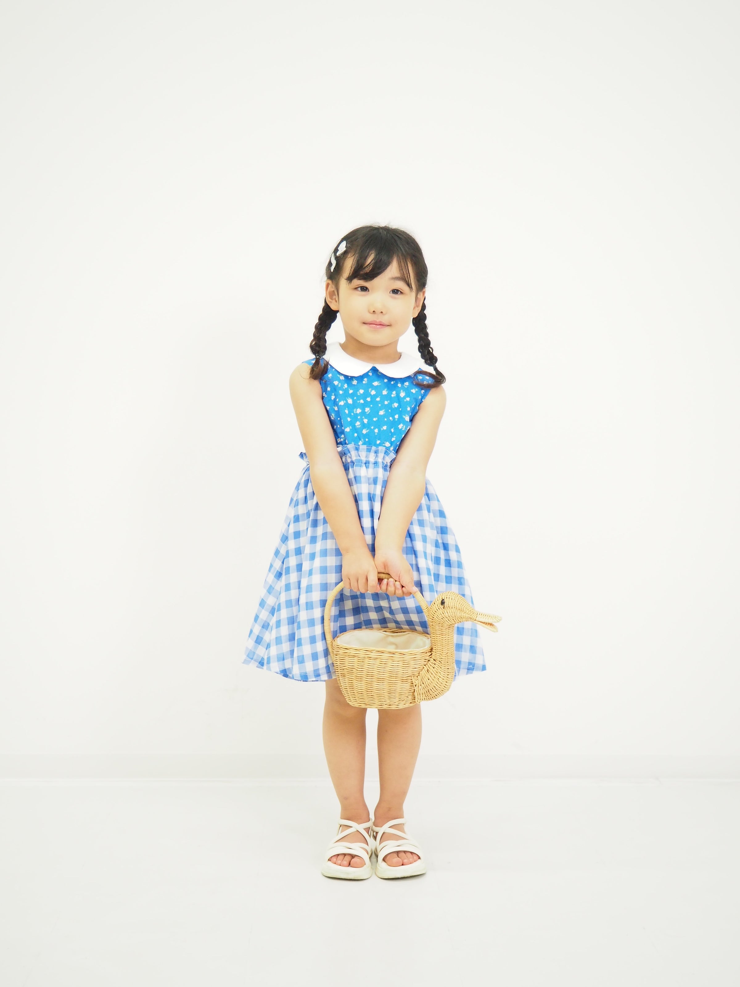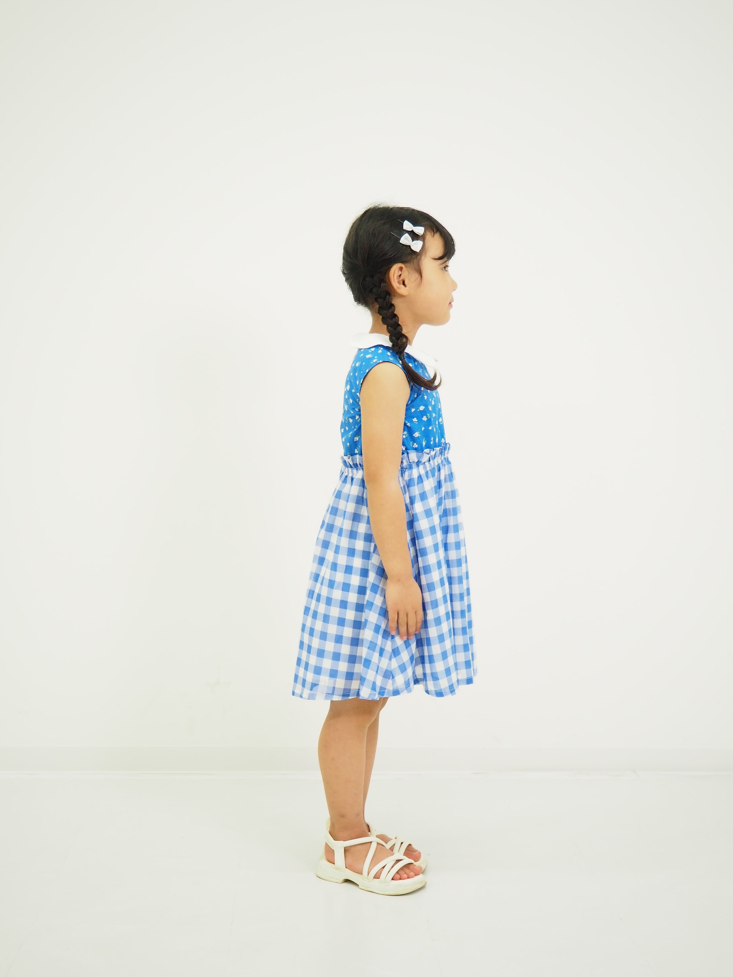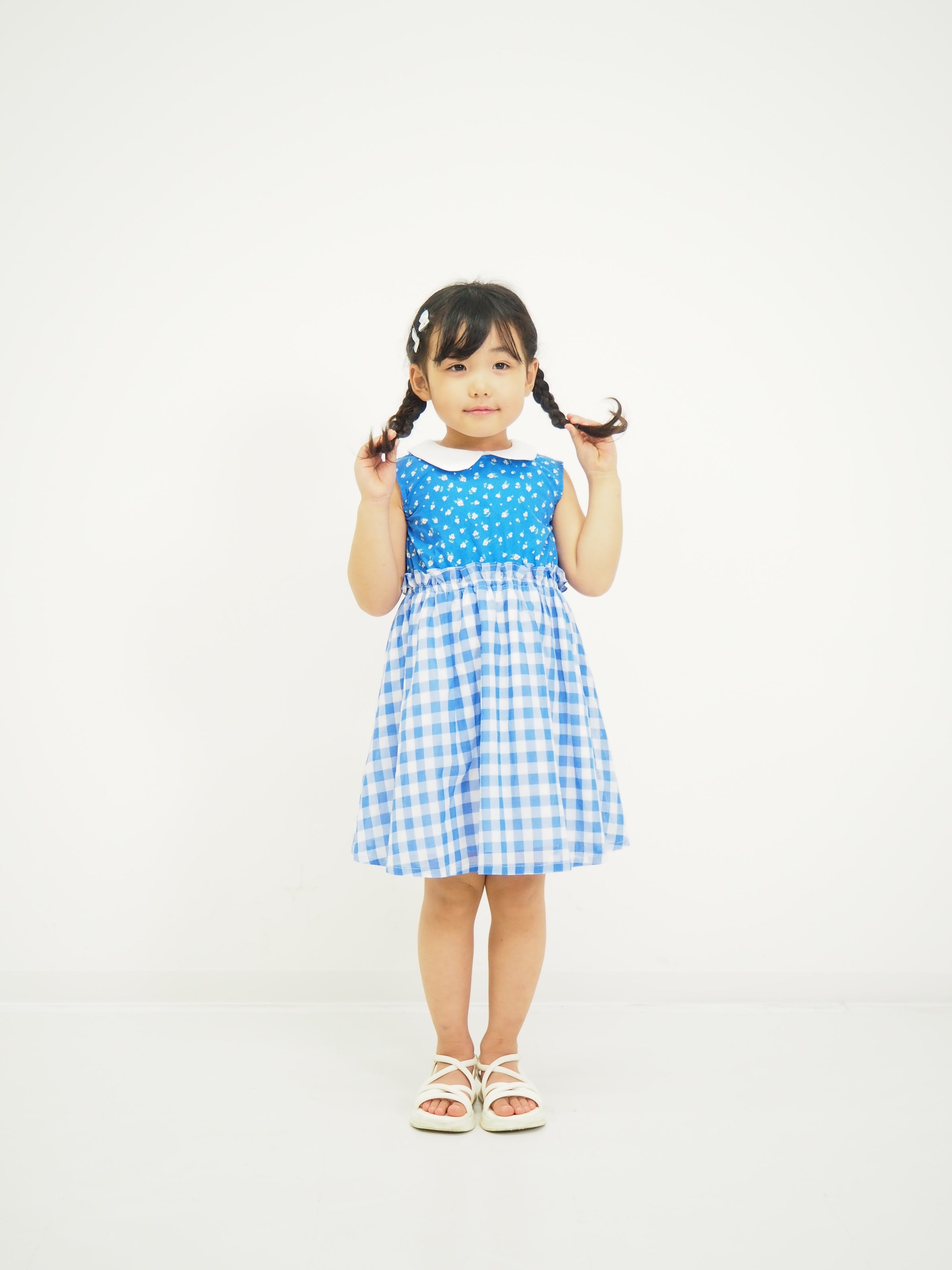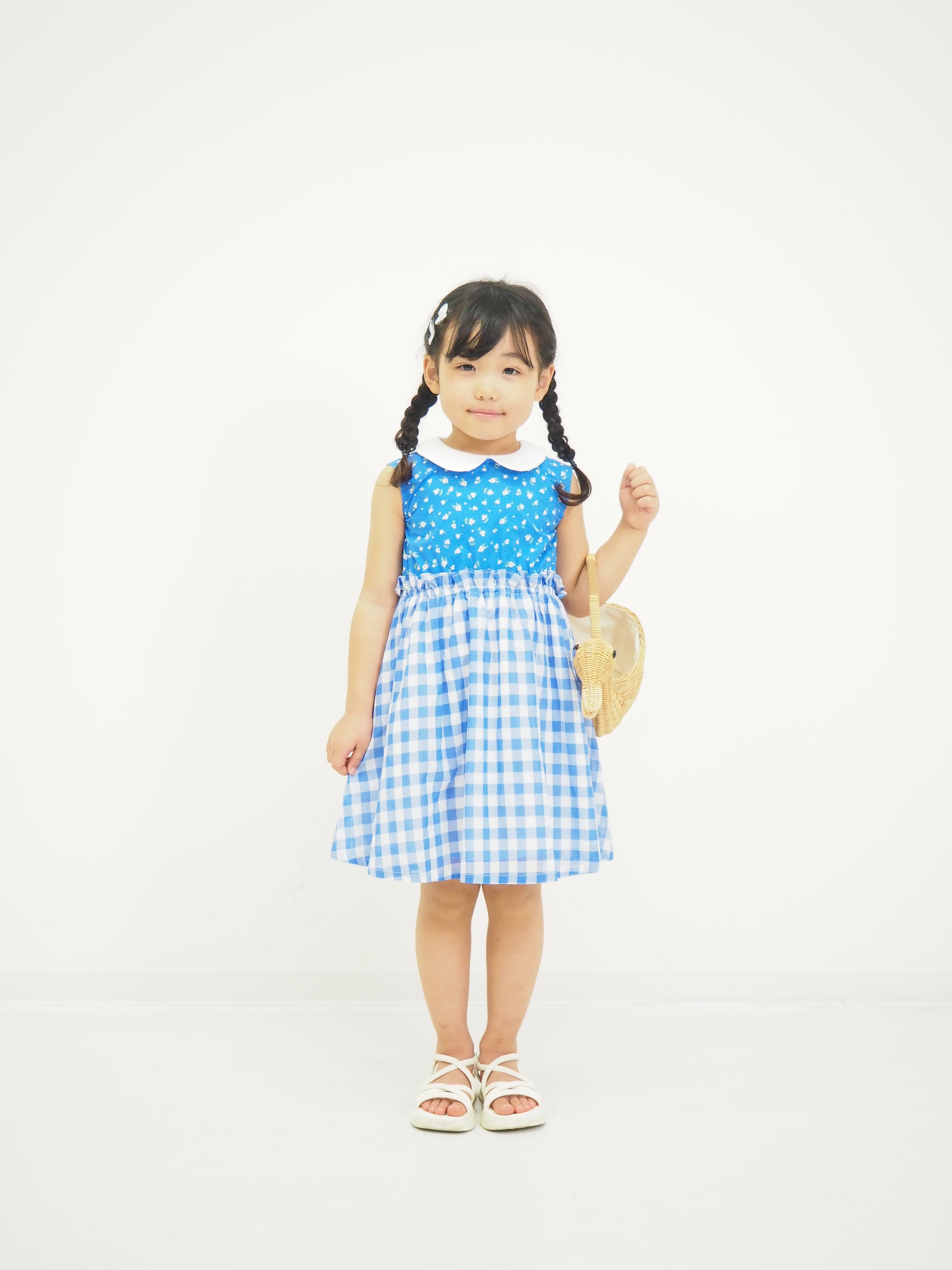 小花×ギンガム丸襟ワンピースは、春夏にぴったりの爽やかなギンガムチェックと可憐な小花柄が出会った、とっても愛らしいデザインのワンピースです♪