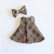 少しラメ感のあるモノグラムプリントが大人っぽいドレス。 共布のリボン付き。 こども服ninoとおそろコーデできるよ♪