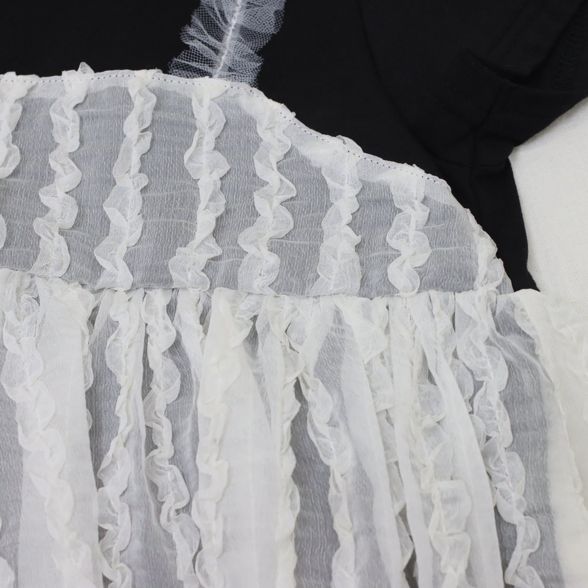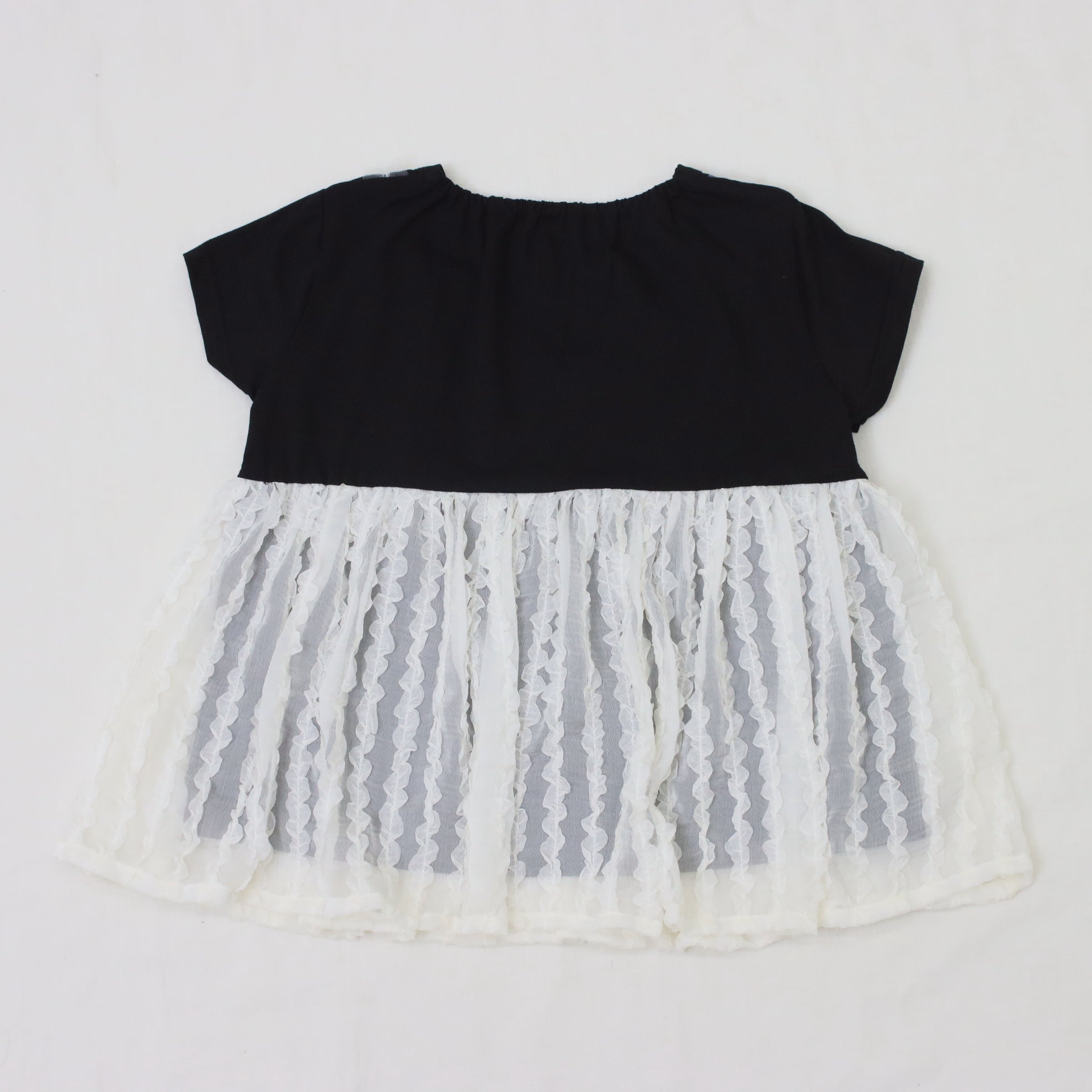 薄手の生地感で軽やかな着用感を楽しめますよ♪ 肩部分には透け感のあるシアーフリルをあしらい、フェミニンで華やかな印象に。重ね着風のデザインがこなれ感たっぷりで、1枚でサマになるのが嬉しいポイント!