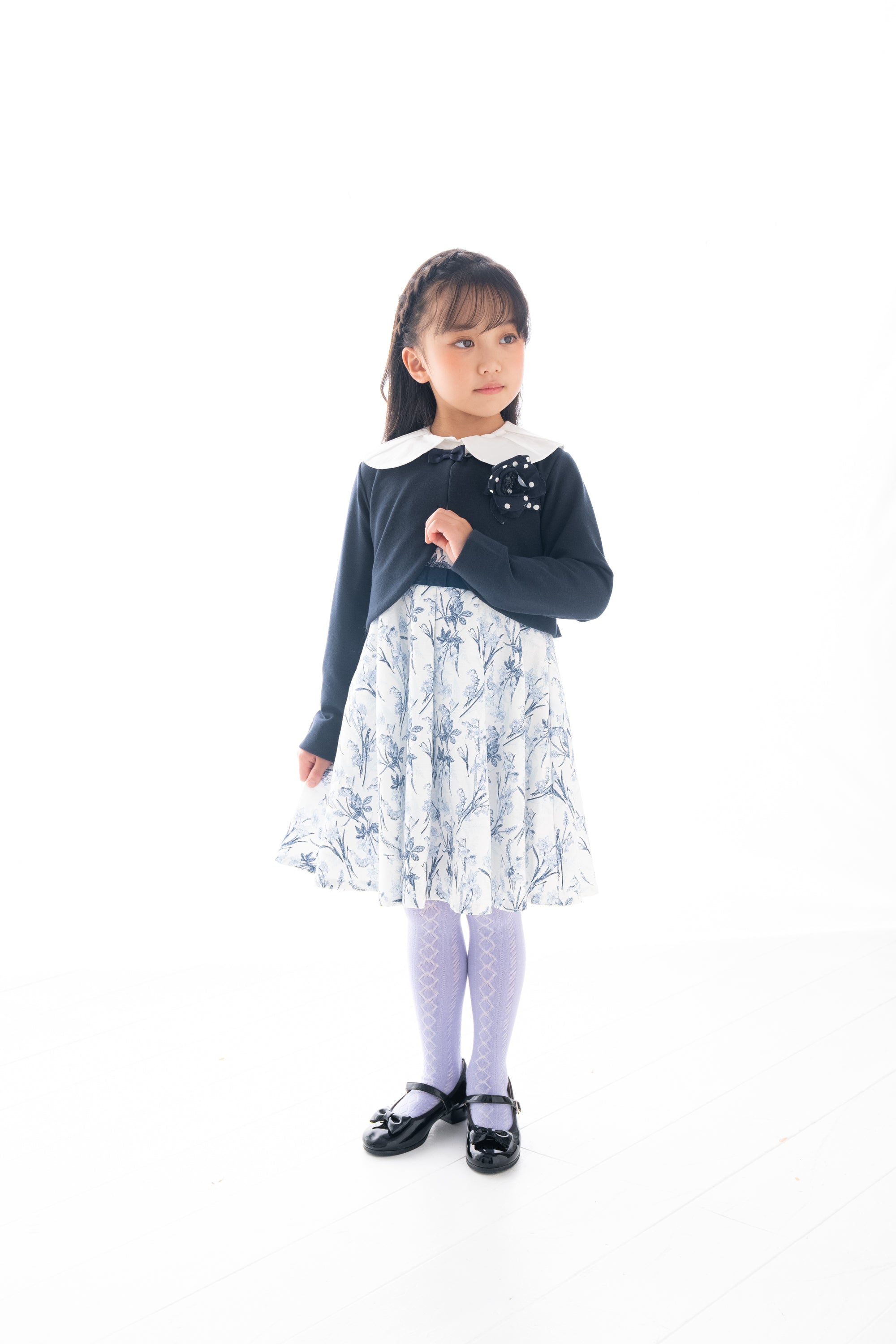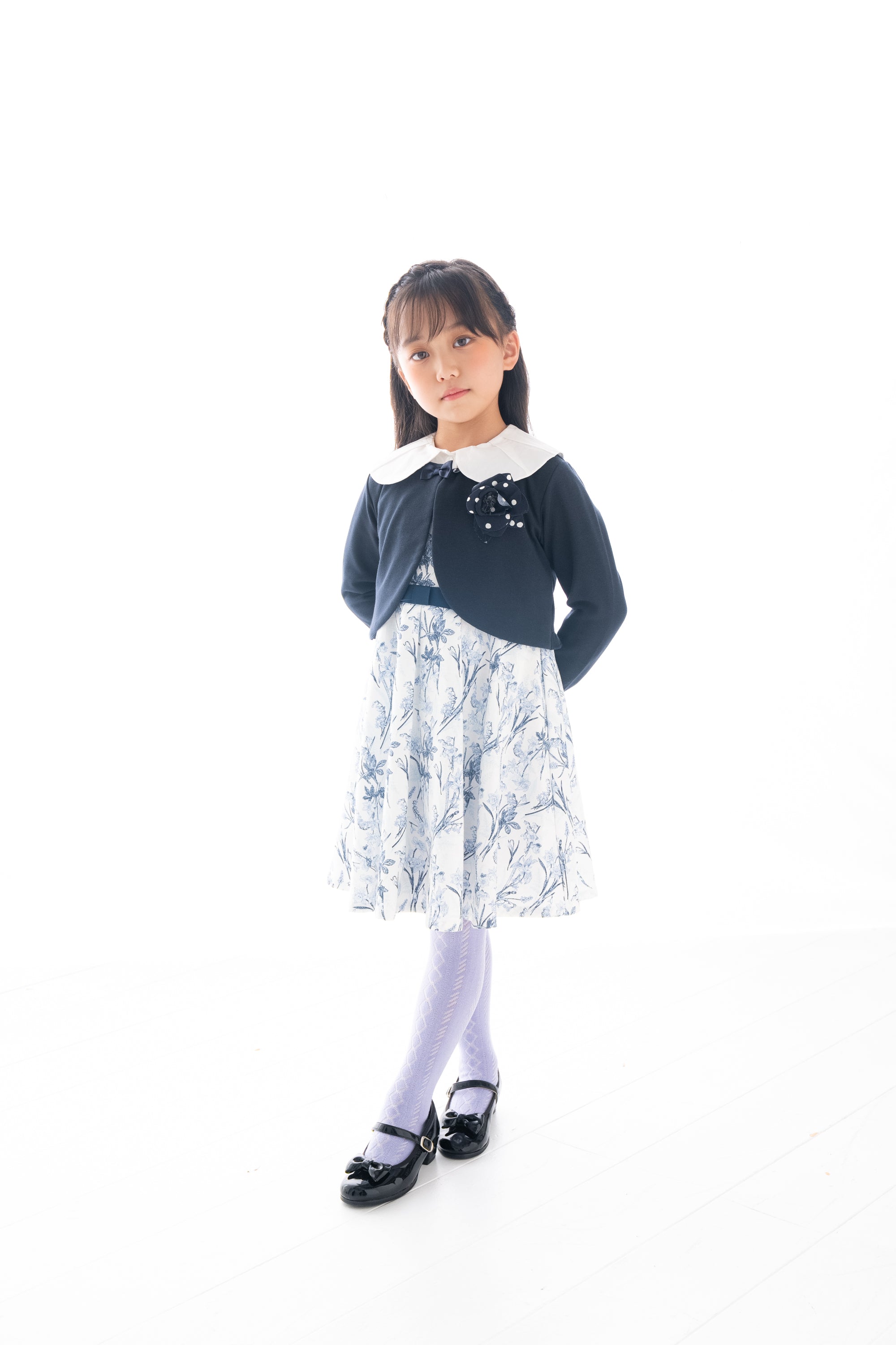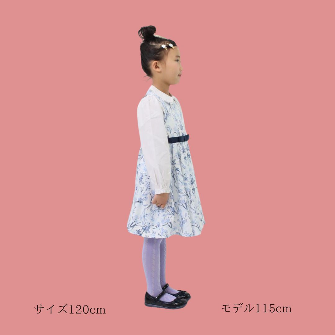花柄をモチーフとした繊細なプリントは、華やかさと品格を兼ね備えており、お子様の成長を祝う大切なシーンにふさわしい装いをお約束いたします。