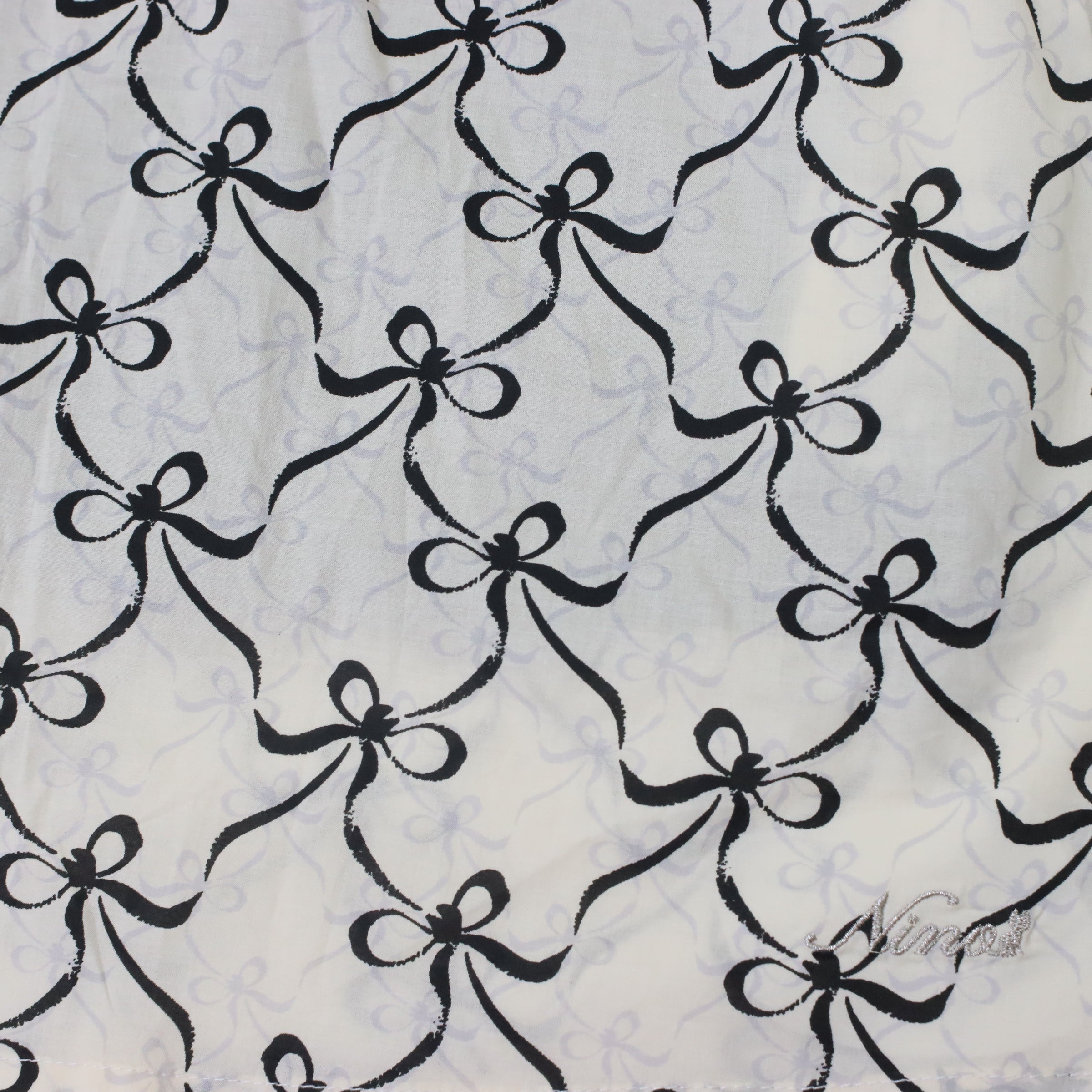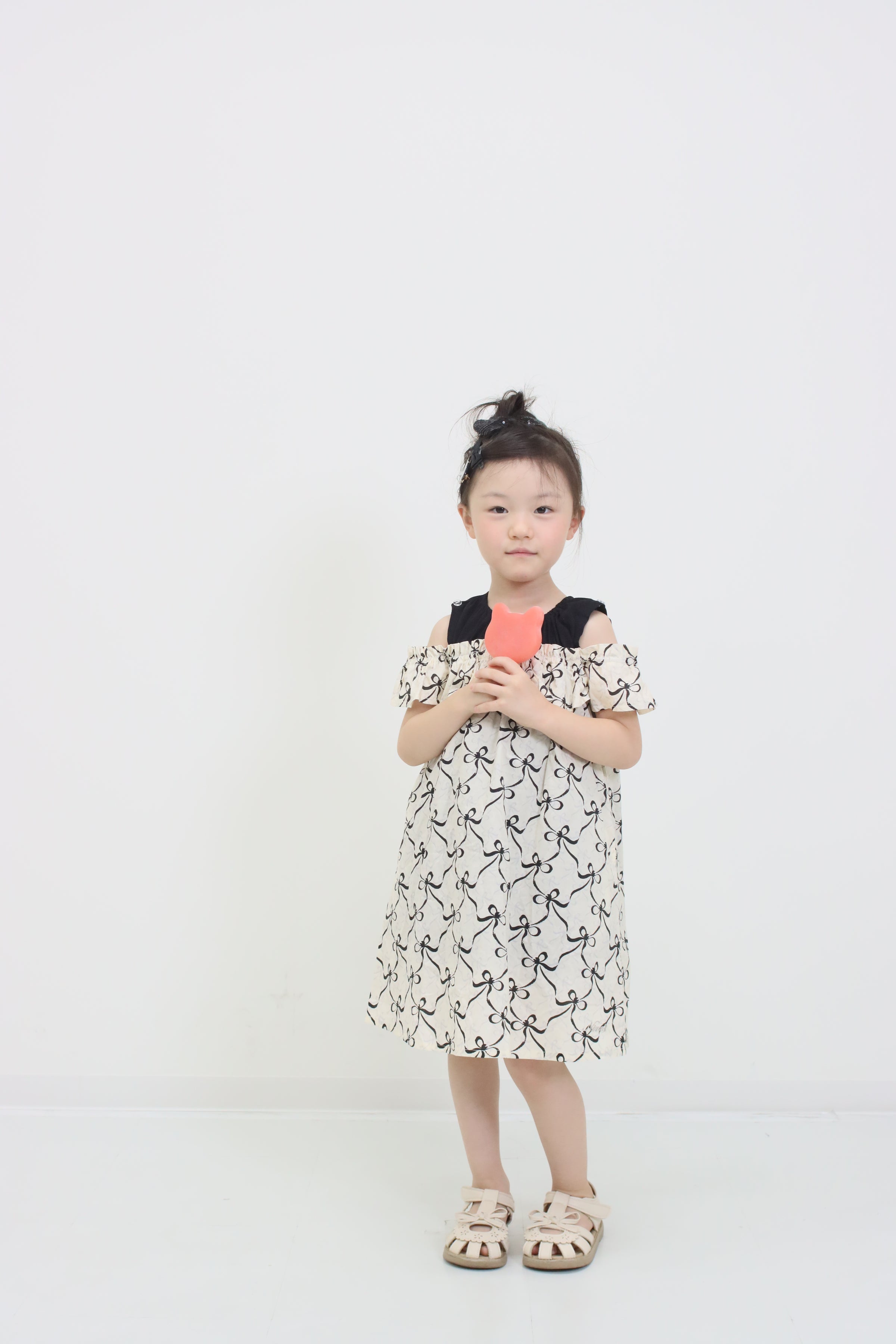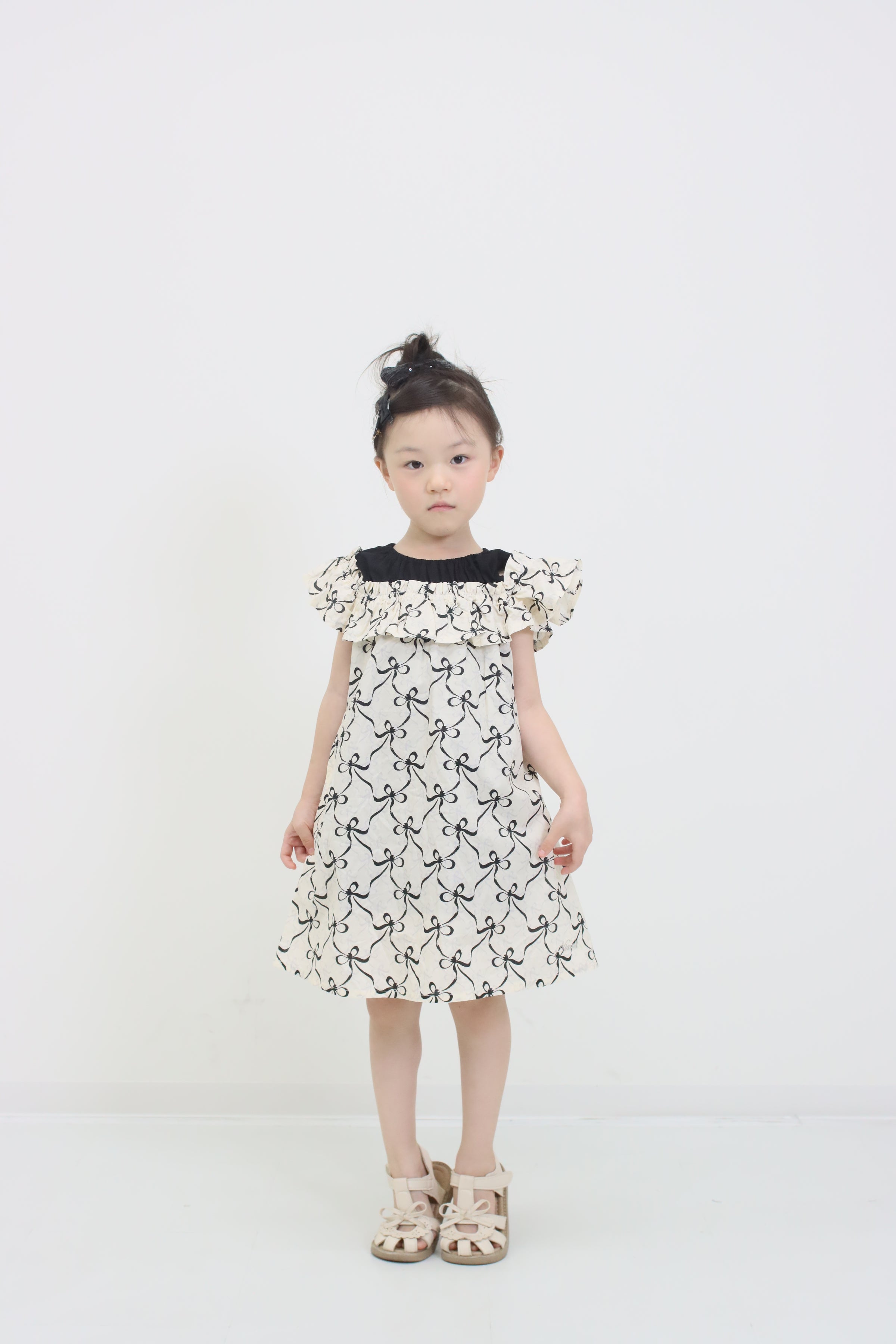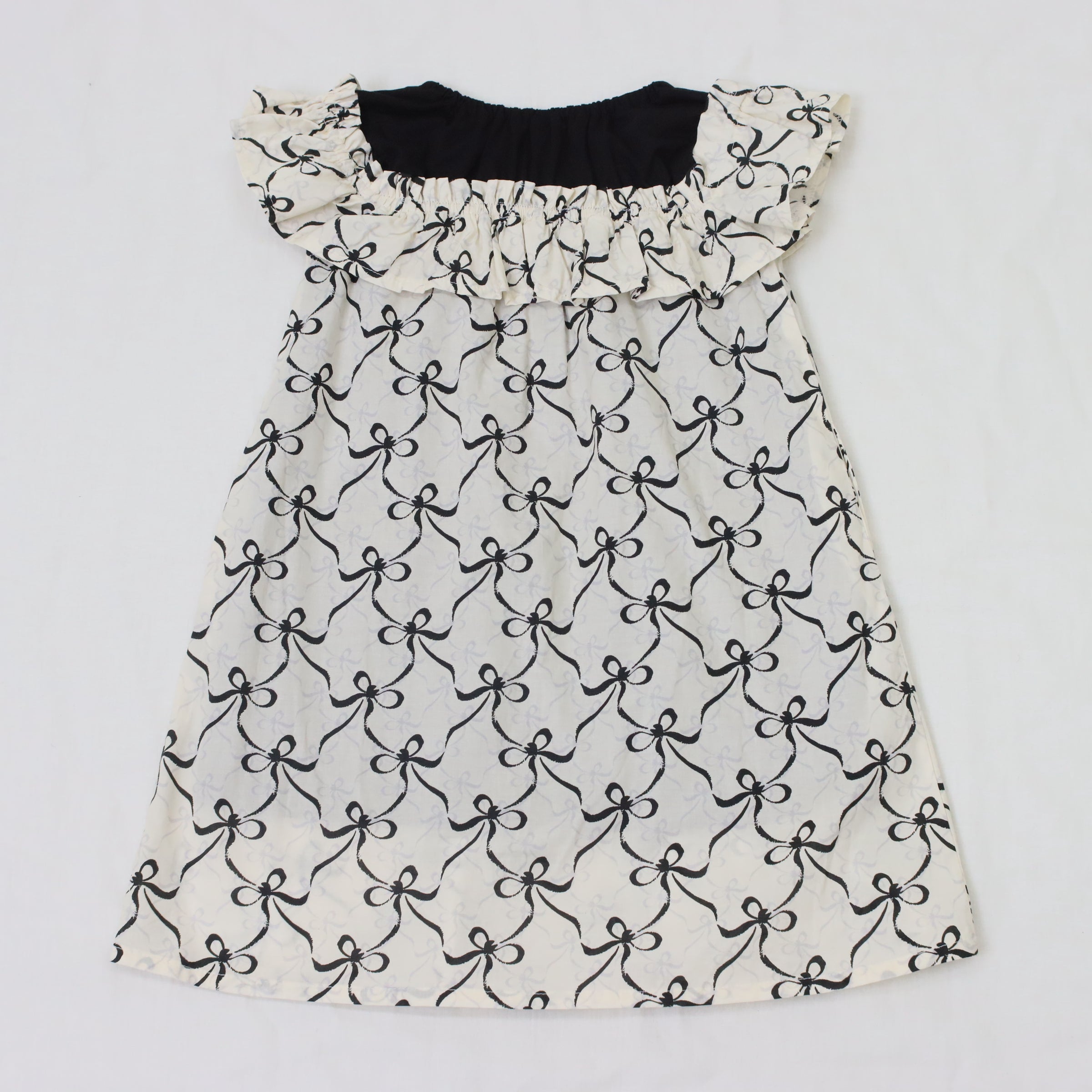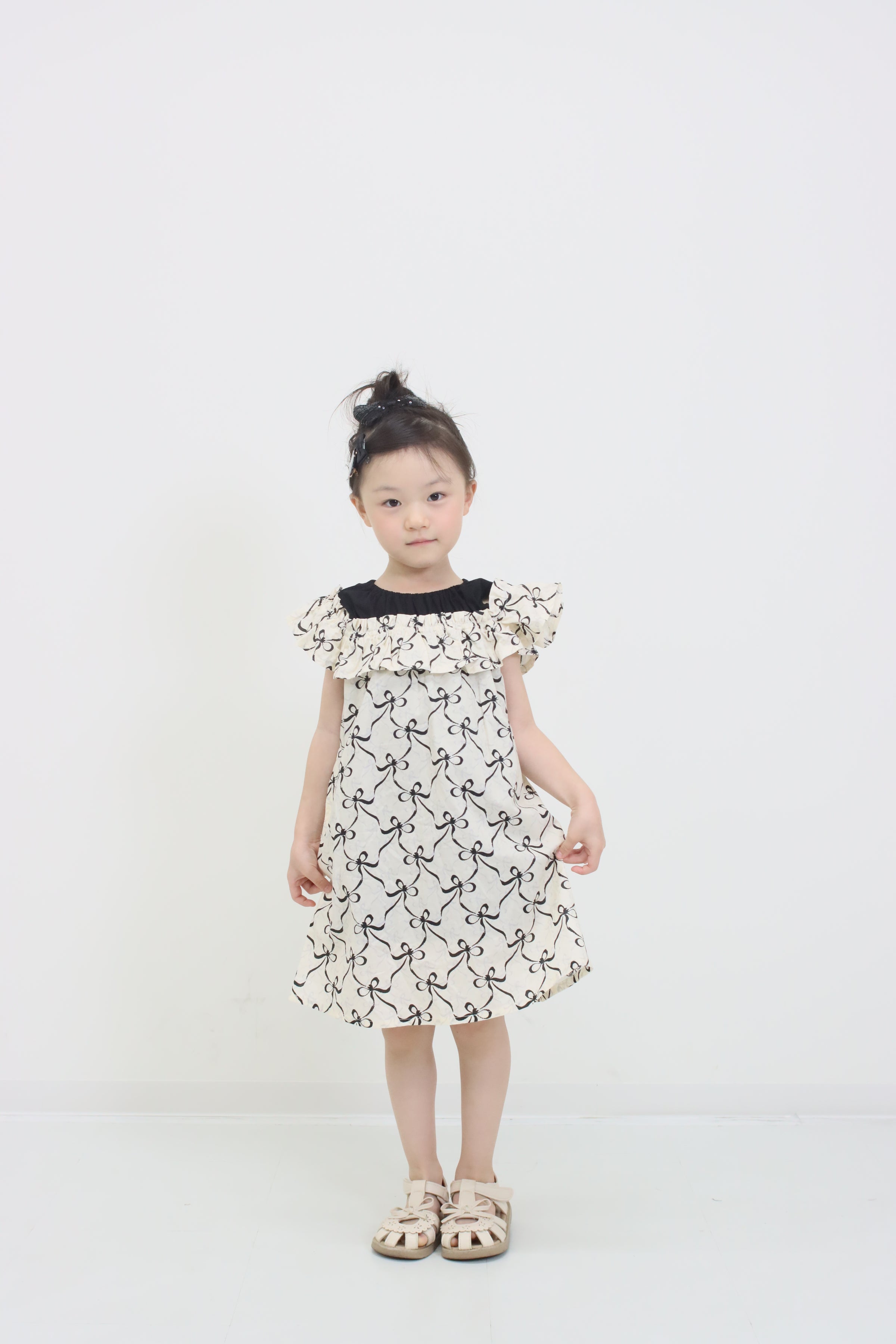 肩元のブラックリボンがアクセントになって、とってもキュートな印象に仕上がっています。