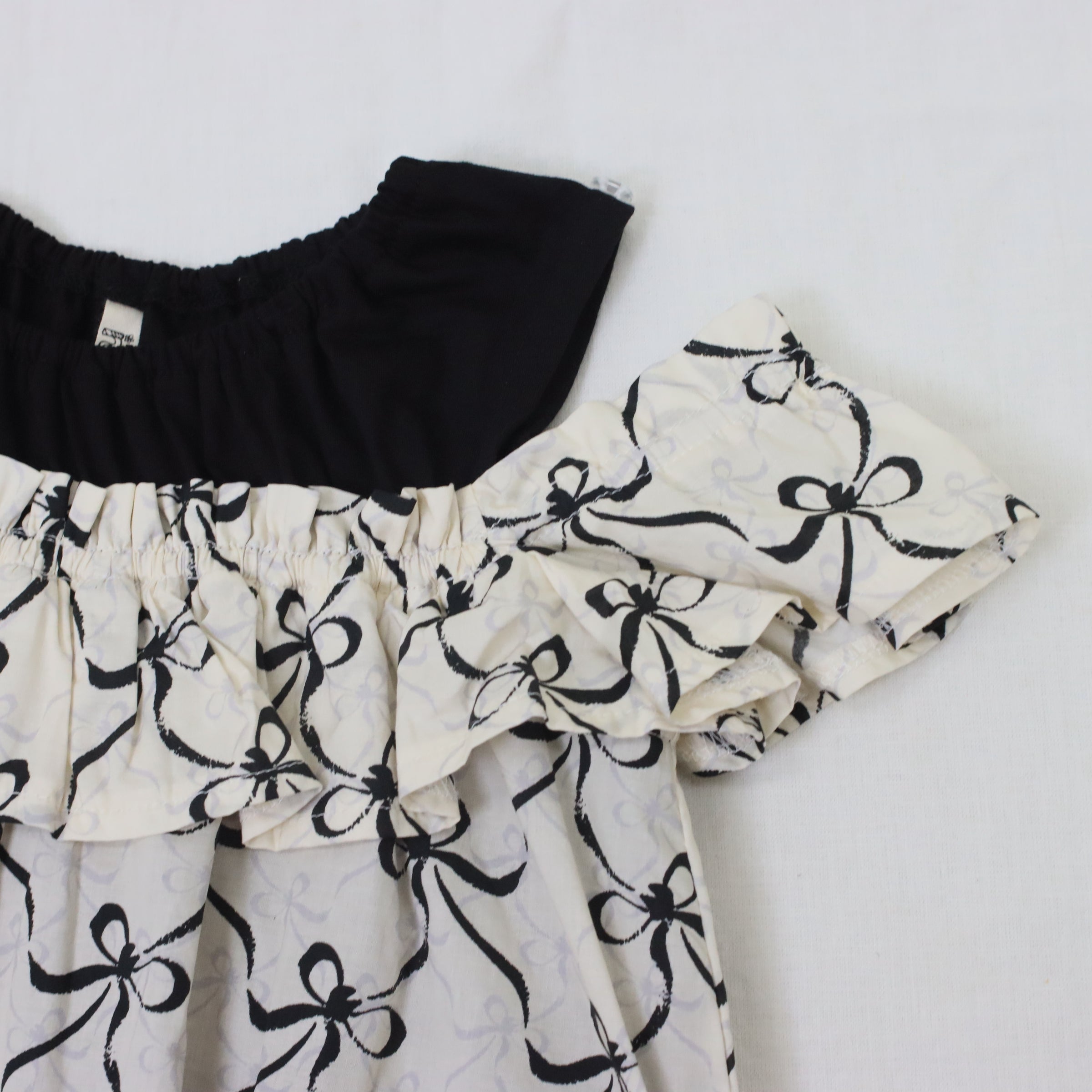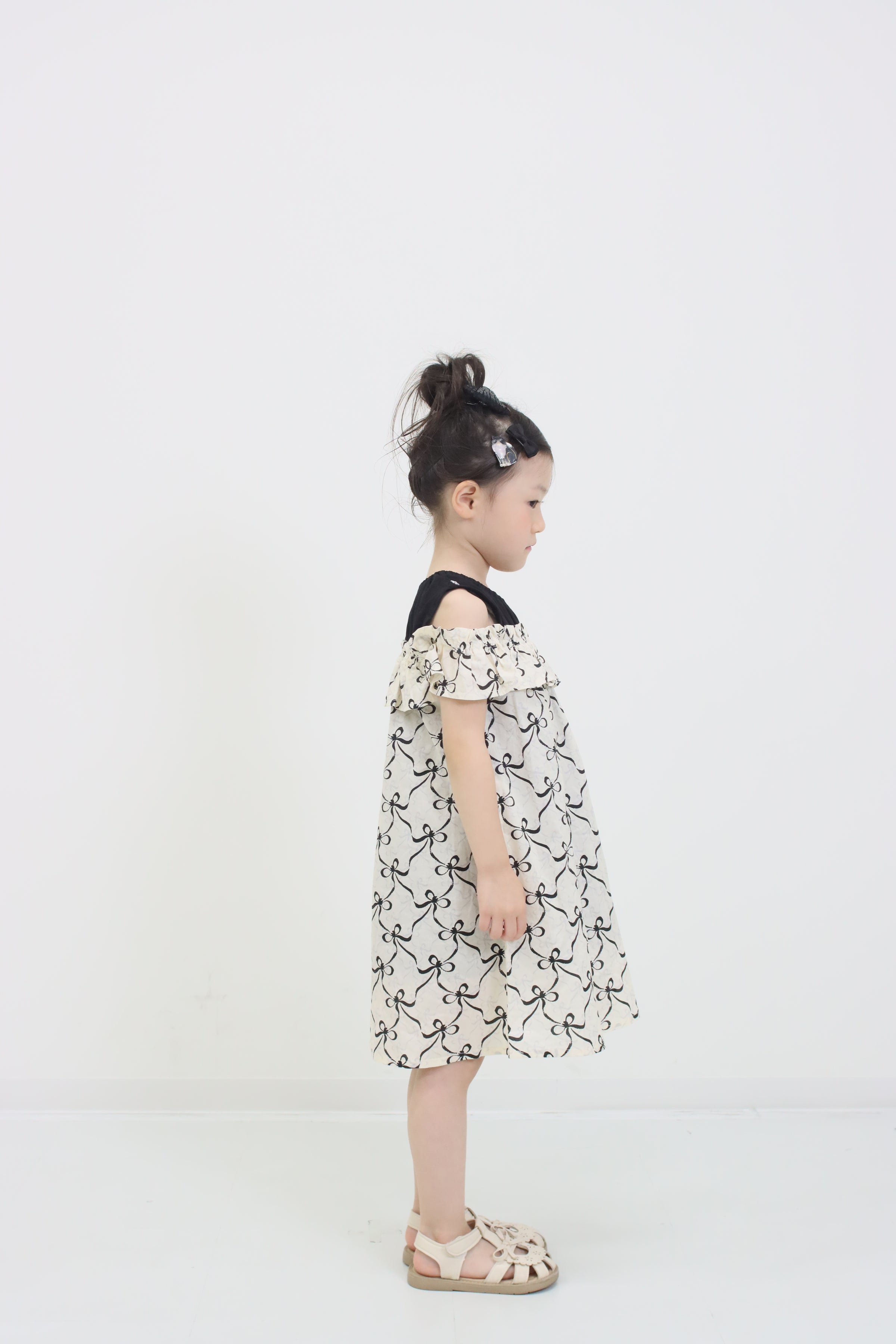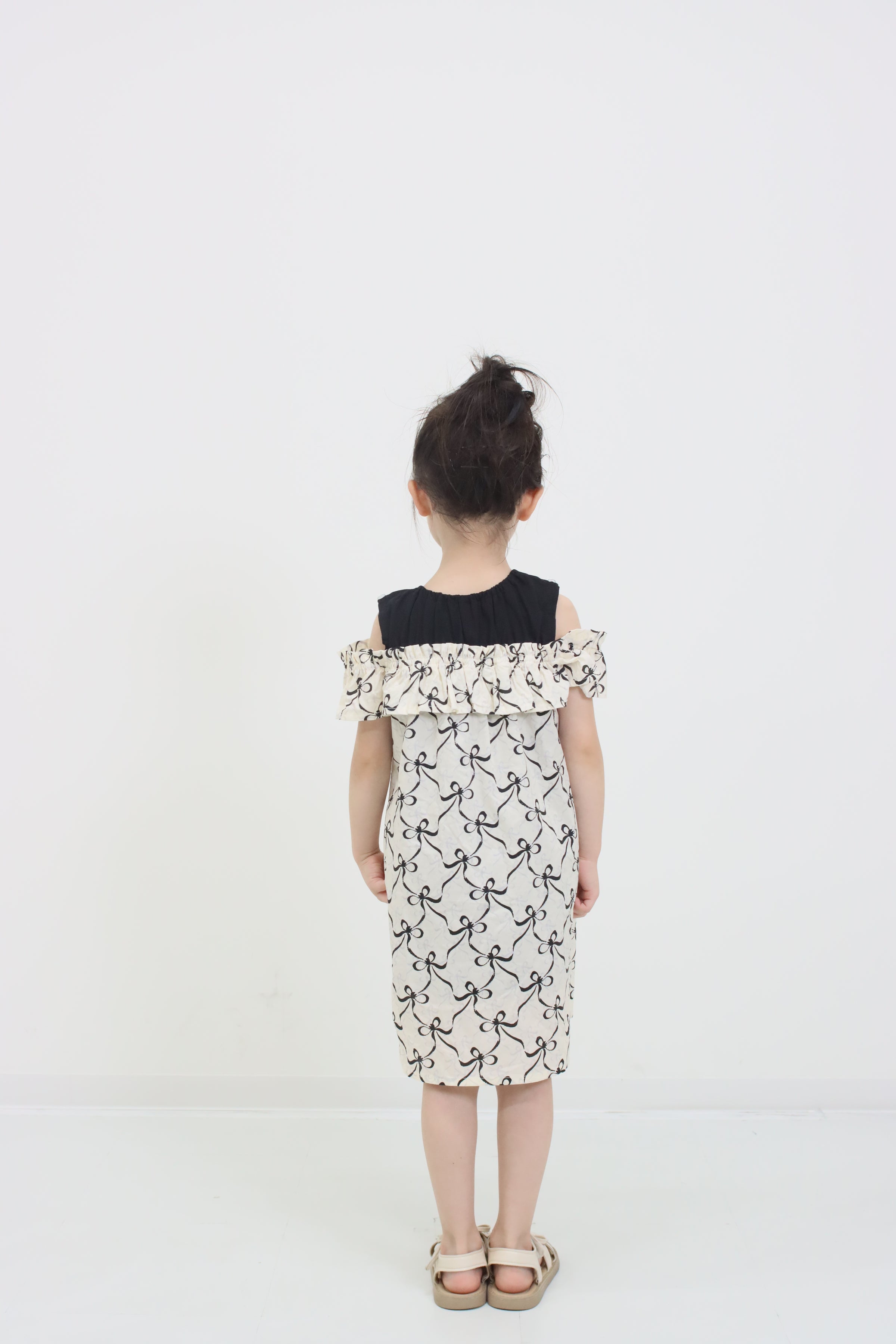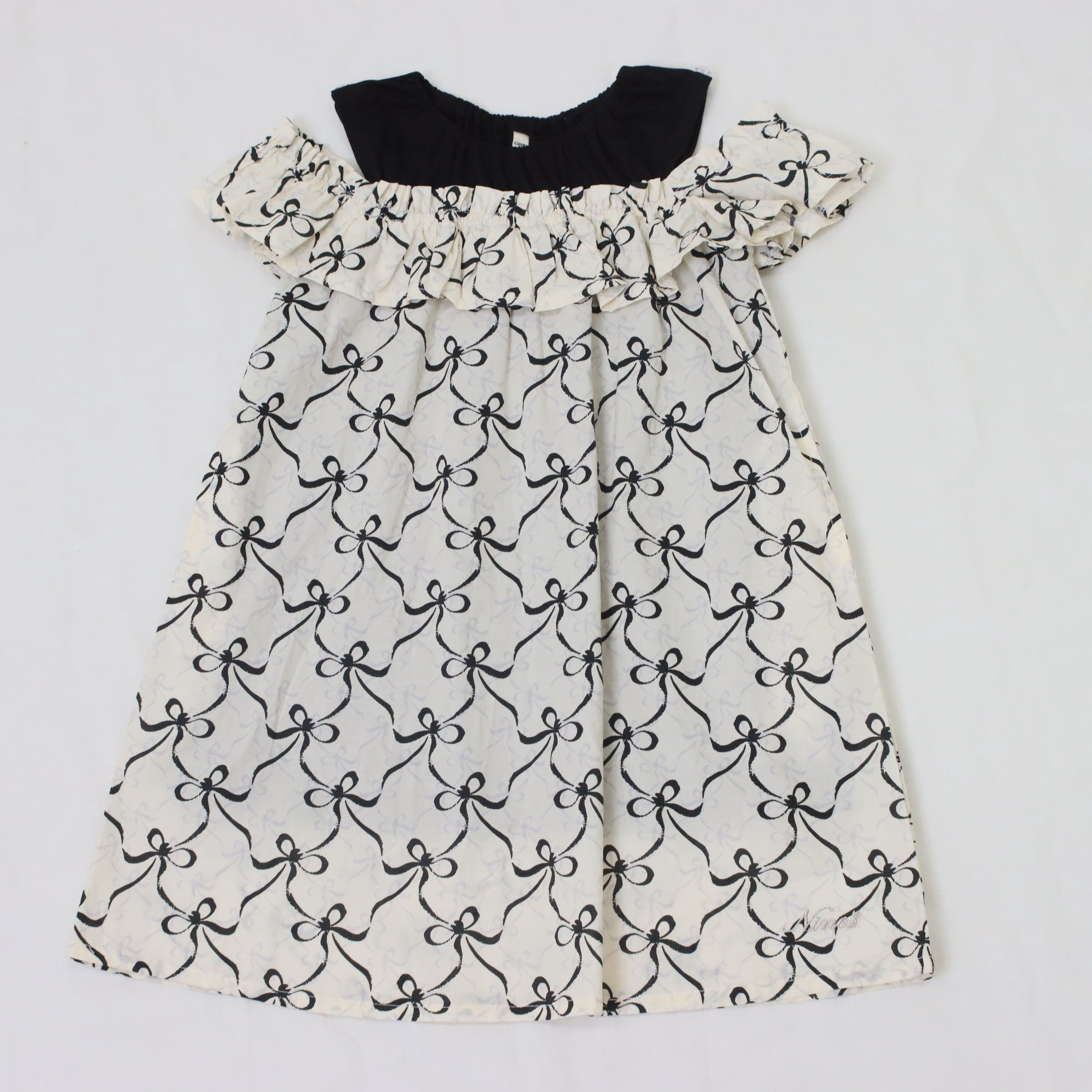 リボンプリントオフショルダーワンピース
