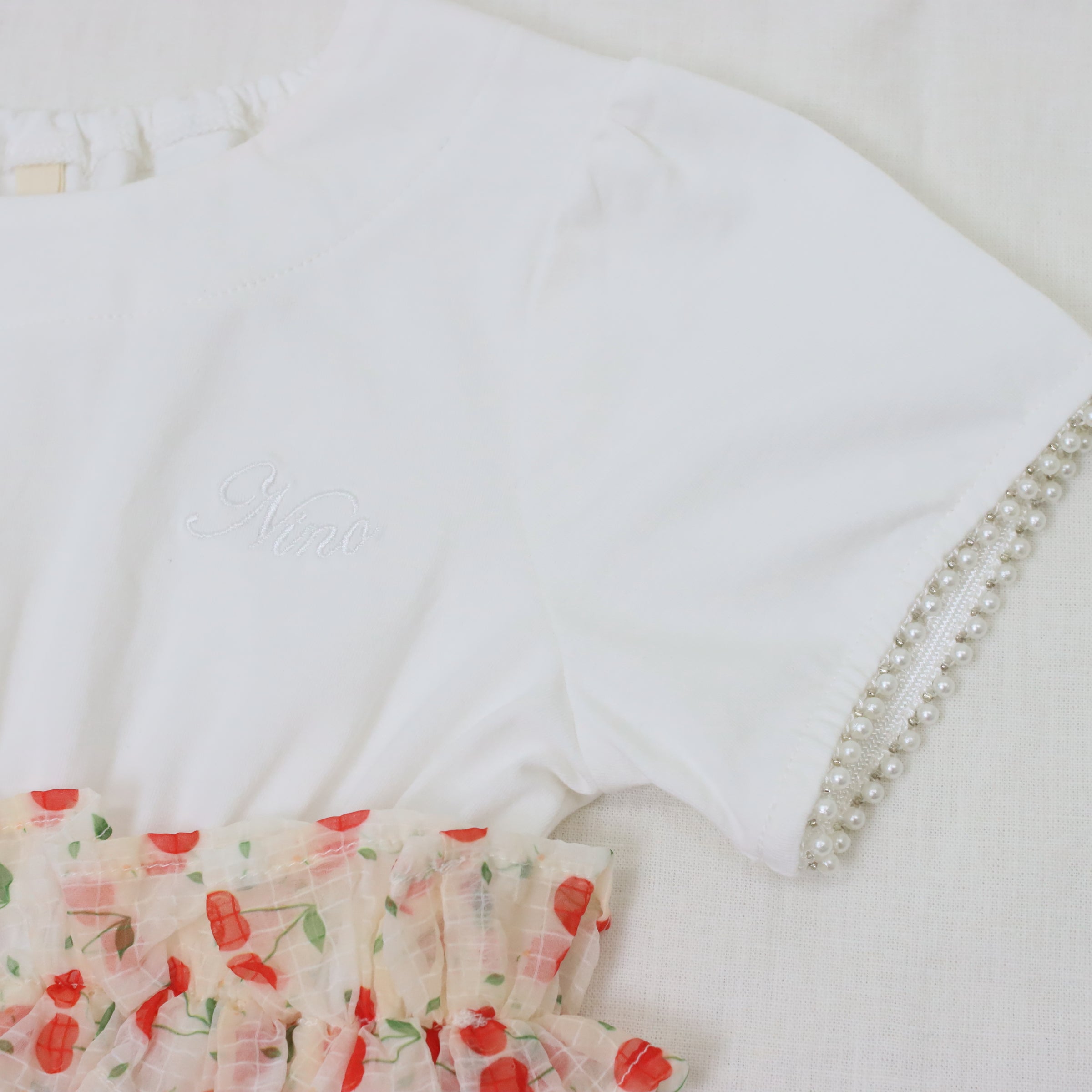 半袖デザインで春から夏まで長くお楽しみいただける、ninoらしい大人可愛い一枚です。