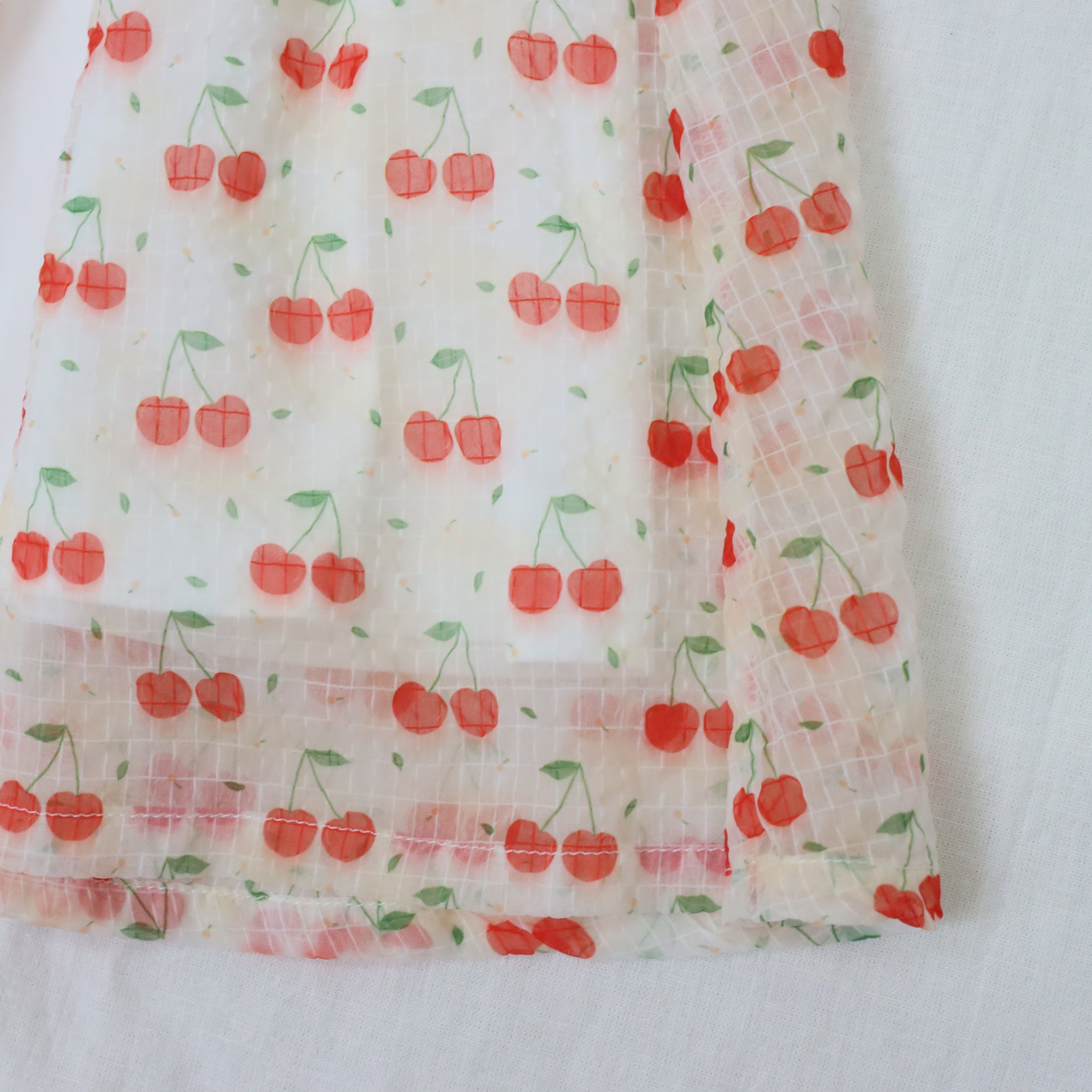 華やかなフラワー柄と可愛らしいチェリー柄の2パターンからお選びいただけます。薄手の生地で軽やかな着心地なので、これからの季節に活躍間違いなしです。