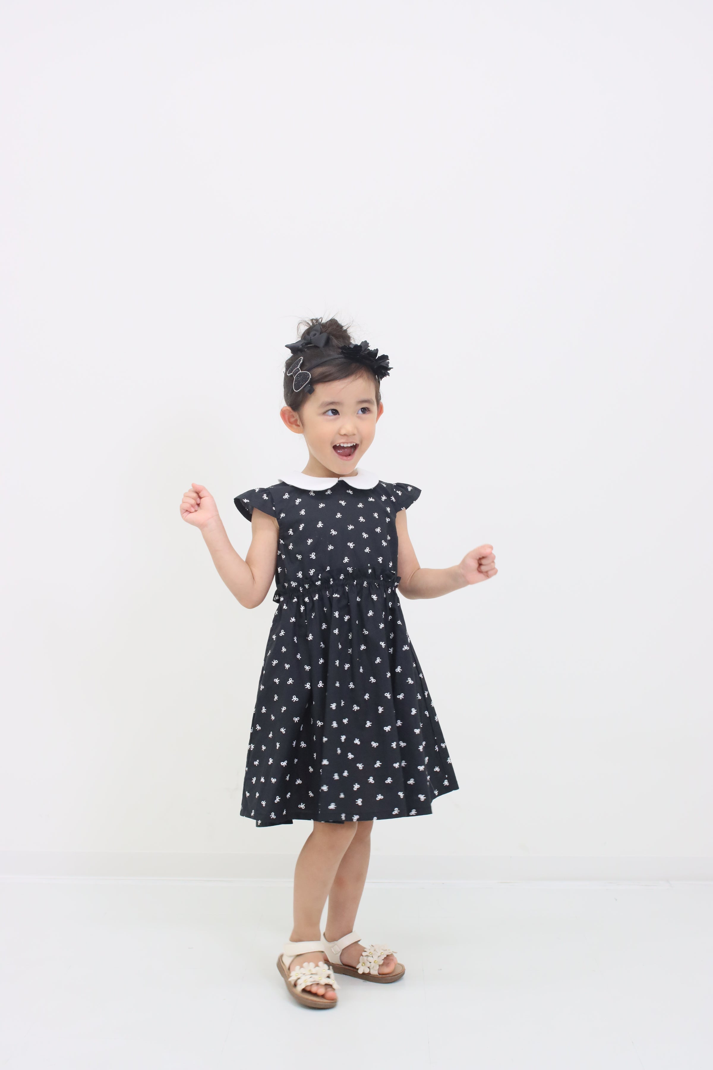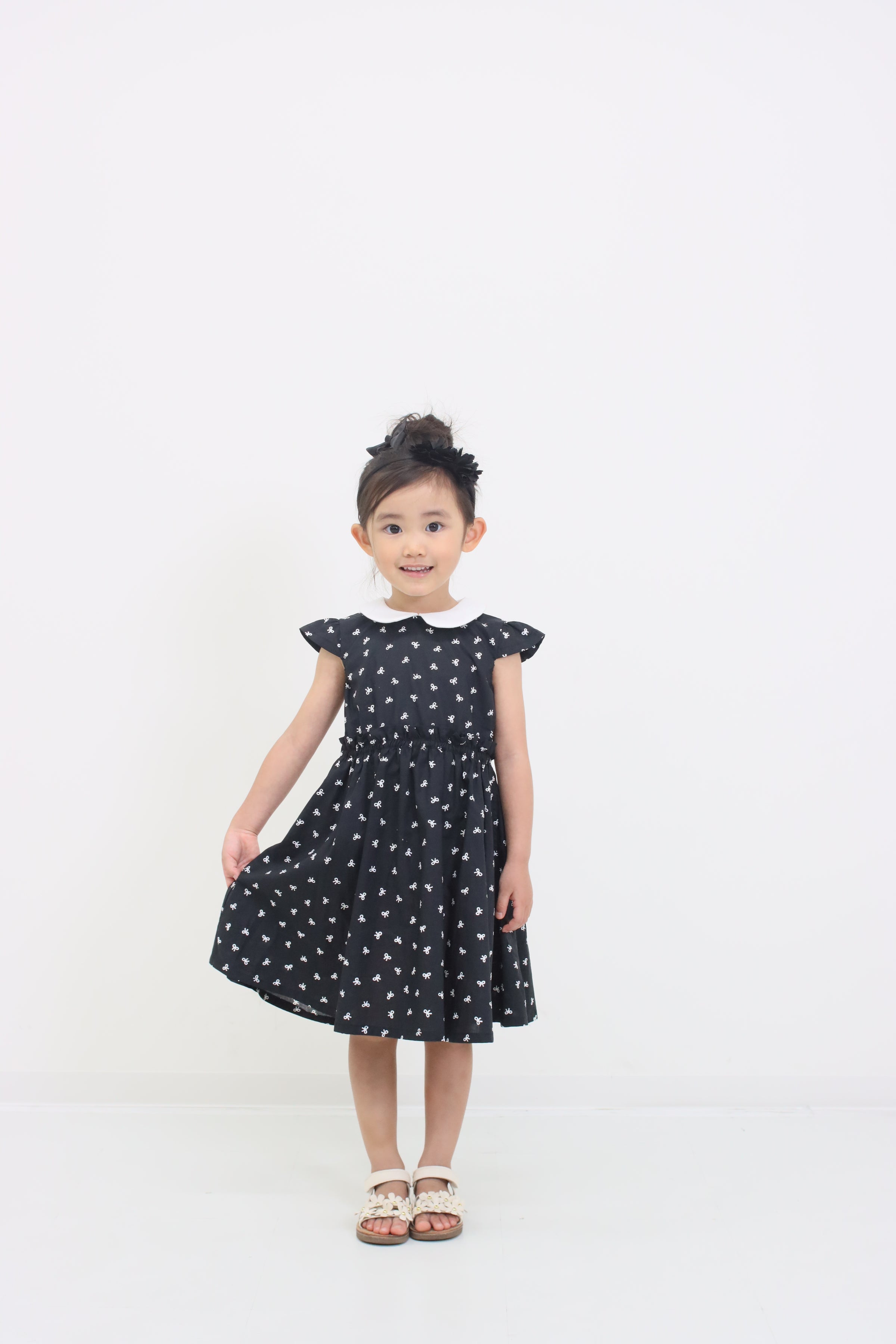 春夏の装いを楽しくしてくれる、リボンプリント丸襟ワンピースは、可愛らしい丸襟デザインに、散りばめられたリボンプリントがとってもキュート!半袖タイプで春夏シーズンにぴったりの一枚です。 カジュアルにもきれいめにも着こなせる万能アイテムで、一枚でサラッと着るだけで様になります。 お揃いのninonyanとリンクコーデも楽しめます。素材は肌に優しいコットン素材を使用し、着心地も抜群です。薄手の生地で軽やかな着心地ながら、透け感はないのでご安心ください。便利なポケット付きなのも嬉しいポイントです。DETAILS