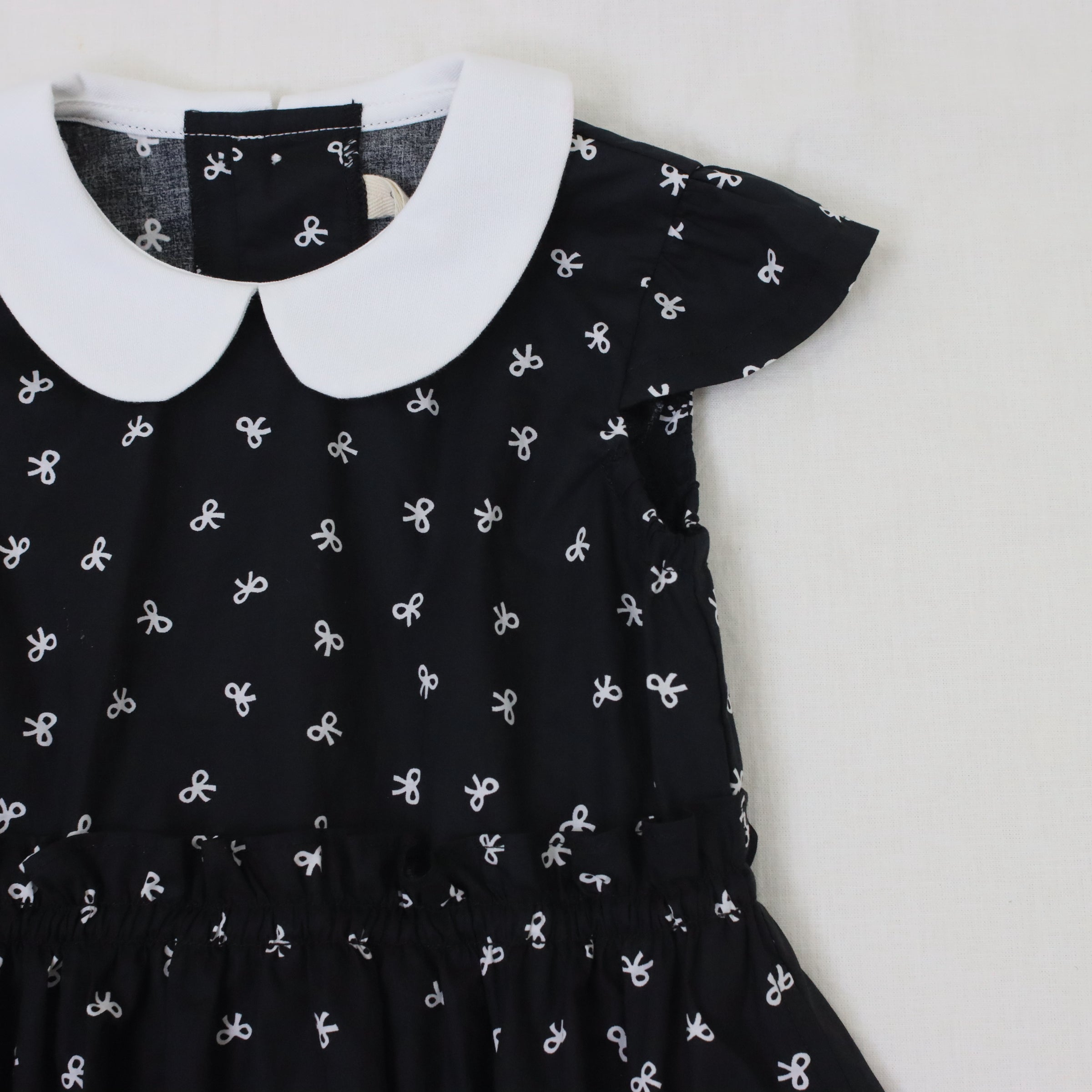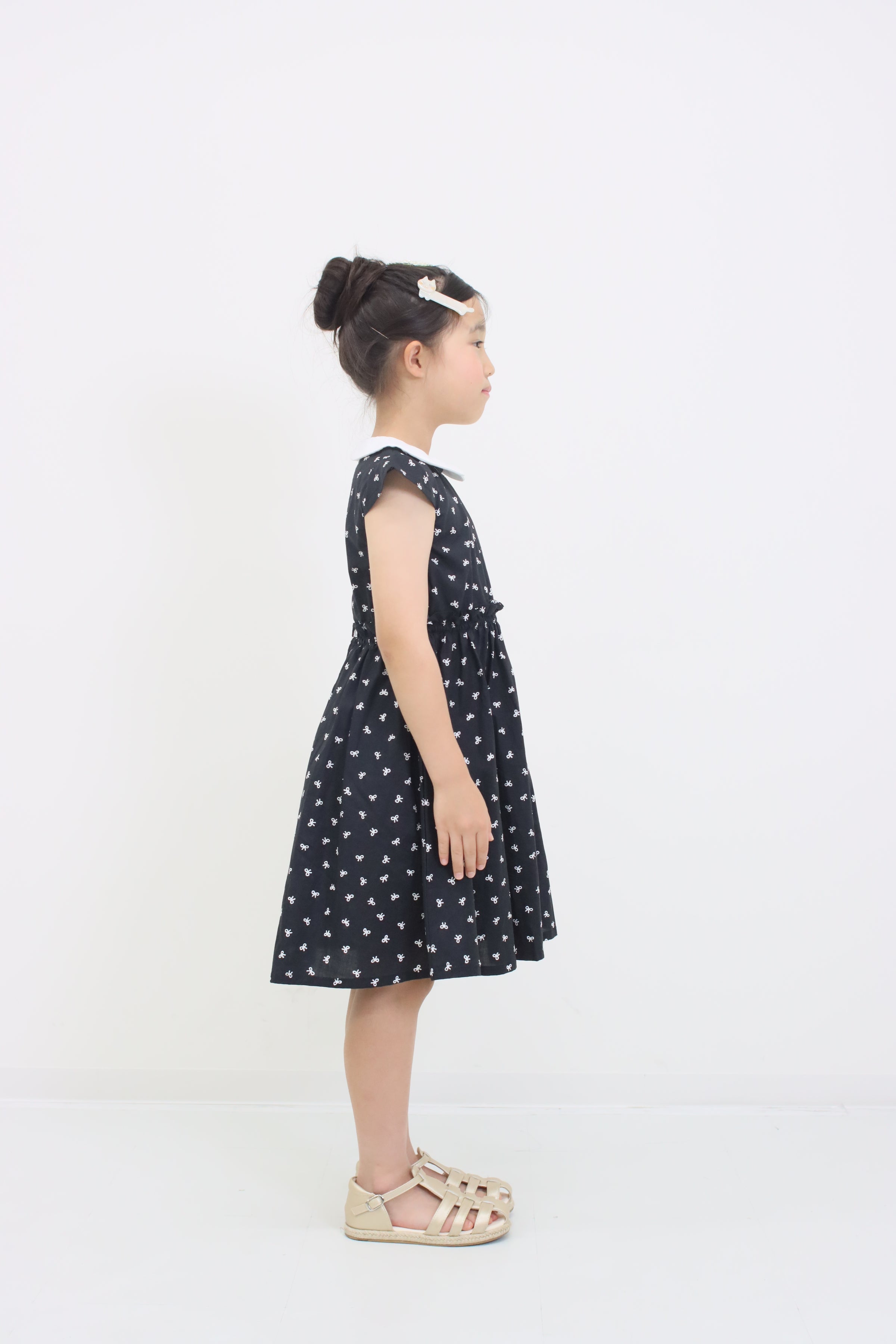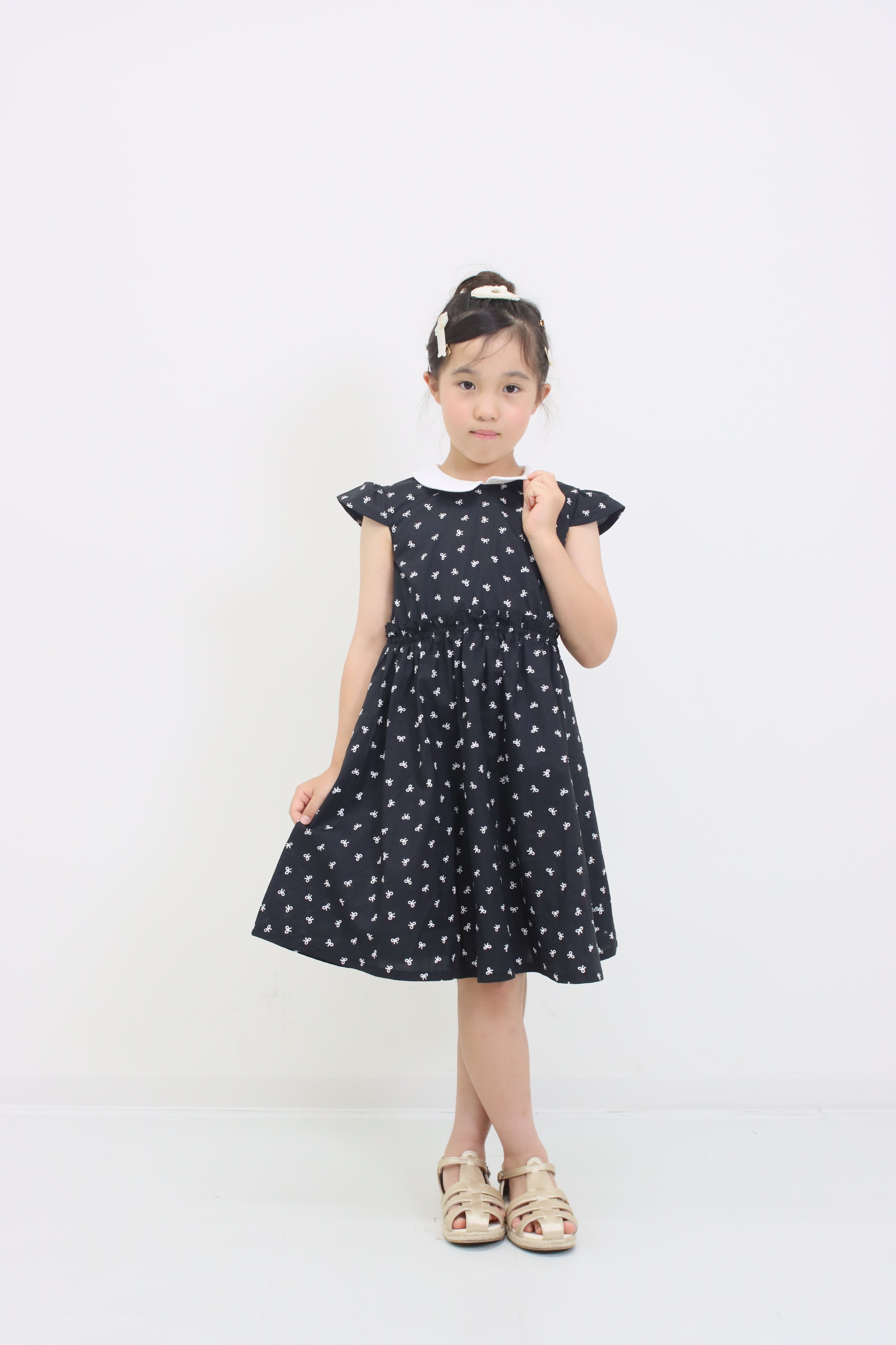 リボンプリント丸襟ワンピース