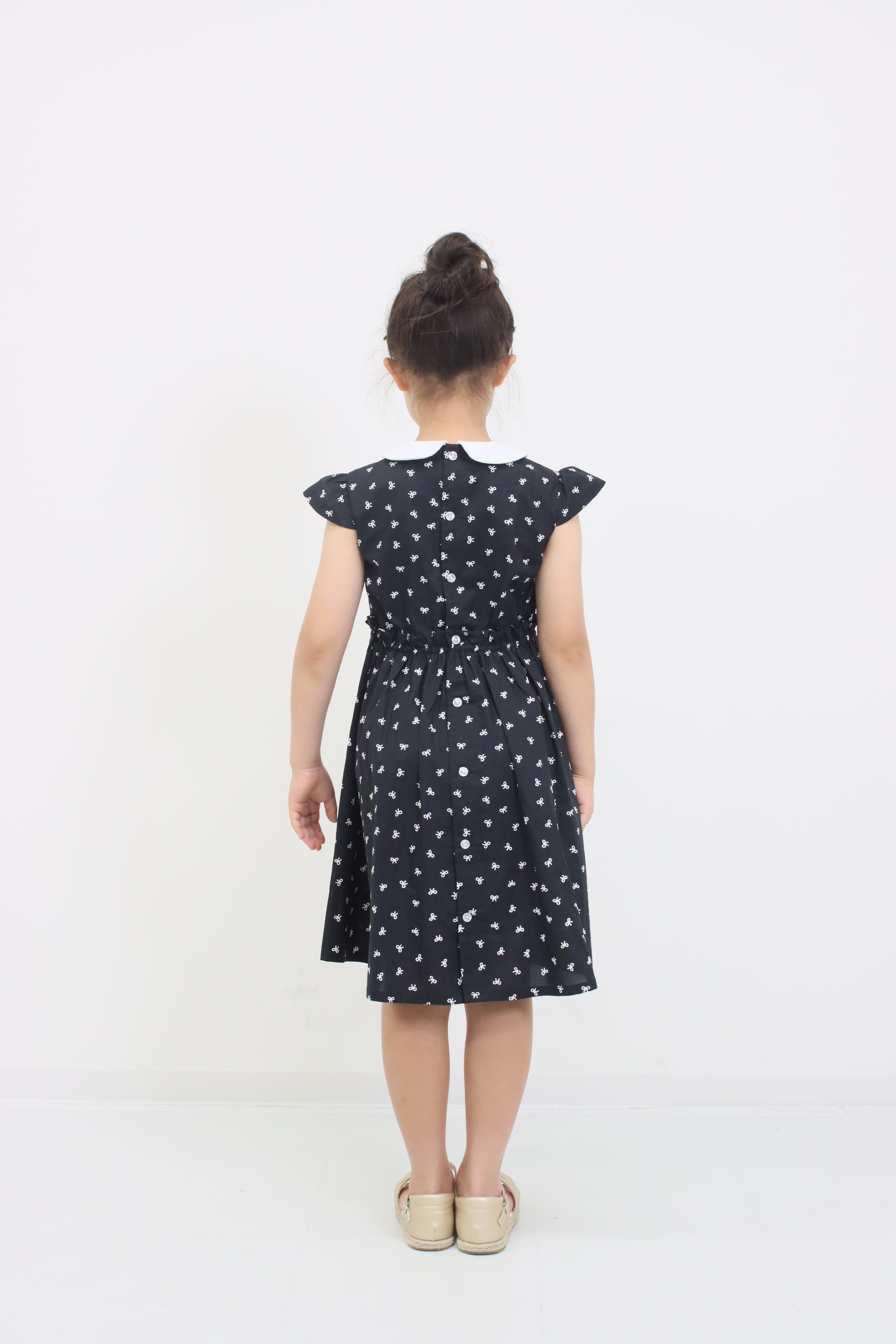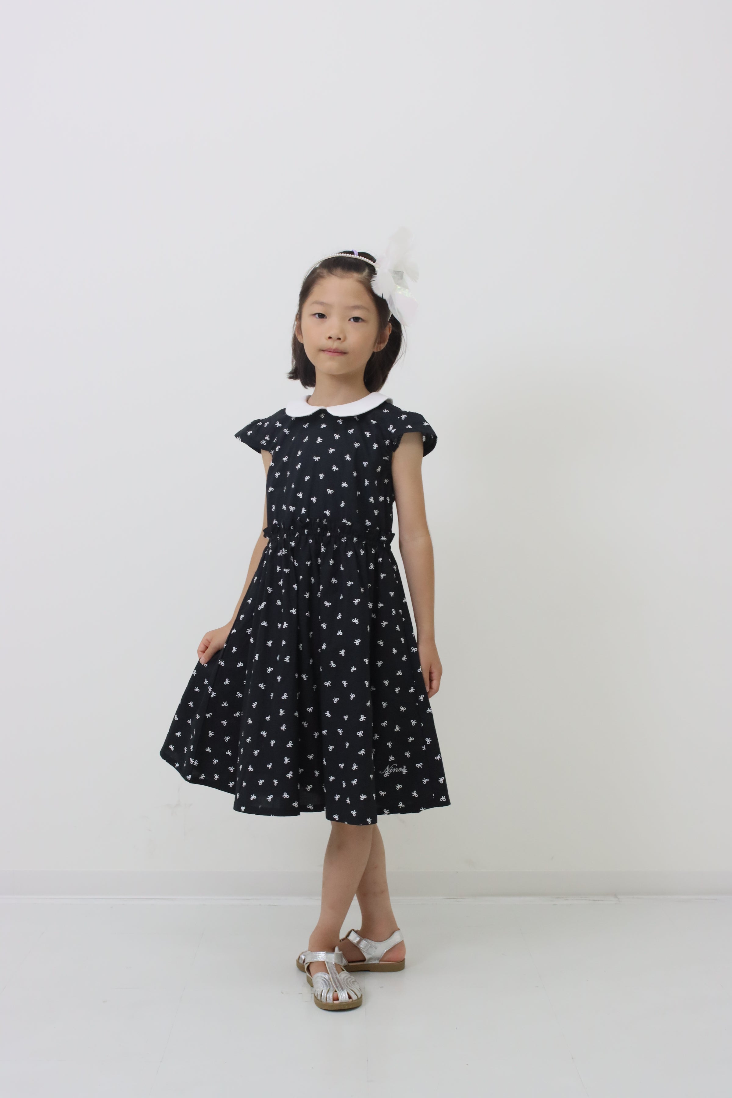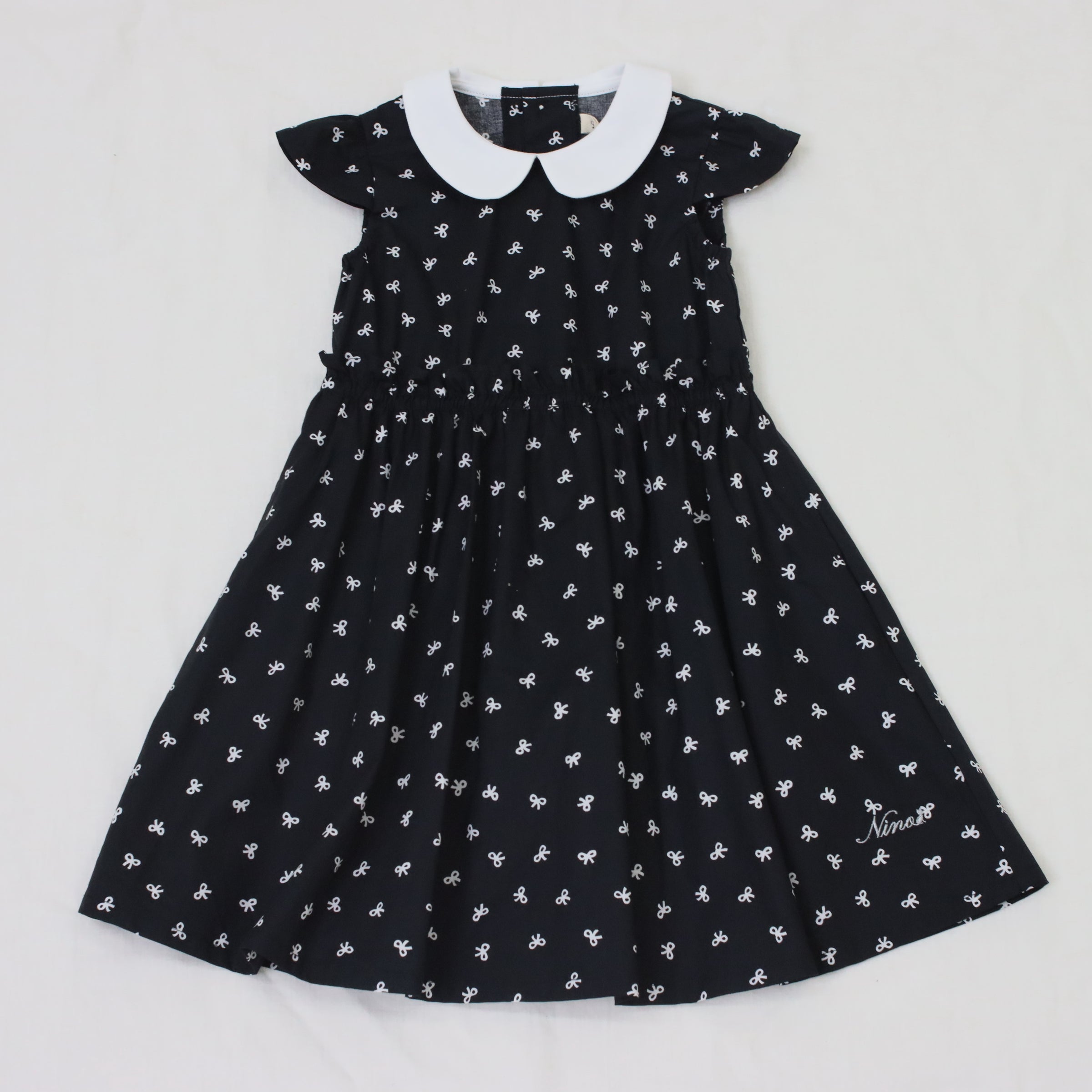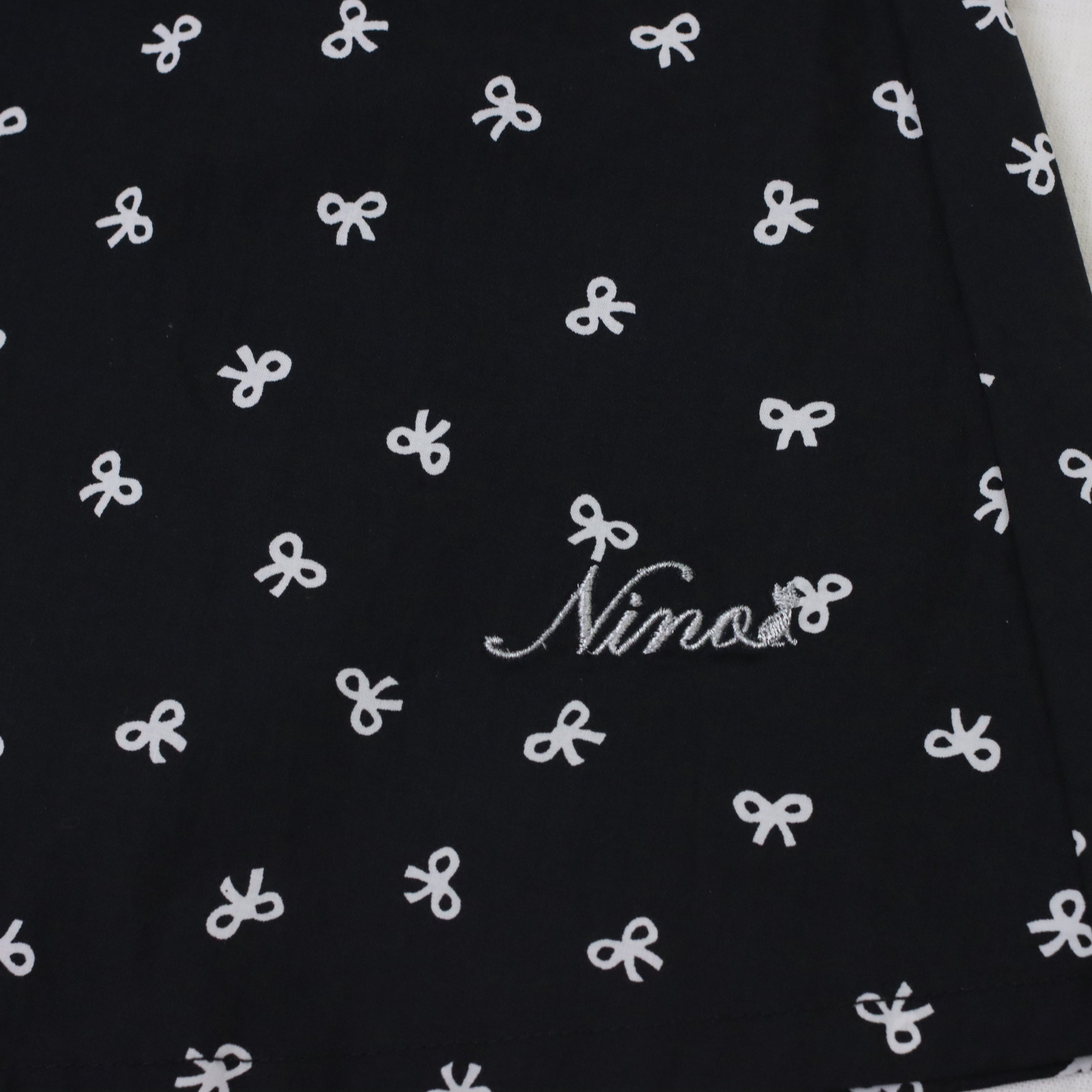 春夏の装いを楽しくしてくれる、リボンプリント丸襟ワンピースは、可愛らしい丸襟デザインに、散りばめられたリボンプリントがとってもキュート!半袖タイプで春夏シーズンにぴったりの一枚です。 カジュアルにもきれいめにも着こなせる万能アイテムで、一枚でサラッと着るだけで様になります。 お揃いのninonyanとリンクコーデも楽しめます。素材は肌に優しいコットン素材を使用し、着心地も抜群です。薄手の生地で軽やかな着心地ながら、透け感はないのでご安心ください。便利なポケット付きなのも嬉しいポイントです。DETAILS