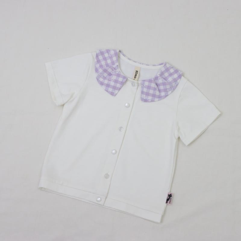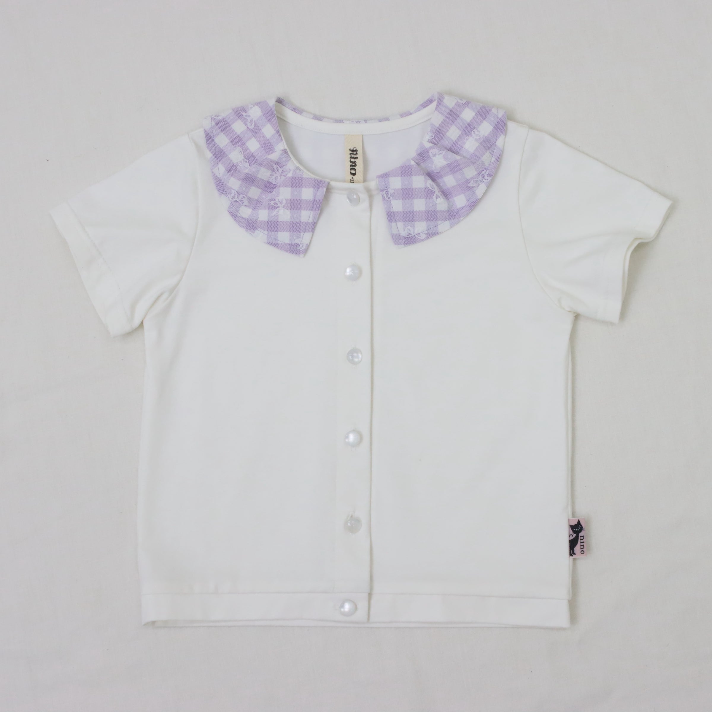 カジュアルなTシャツ感覚で着られるのに、襟元のギンガムチェックレースが可愛らしさをプラスしてくれる優秀アイテムです!