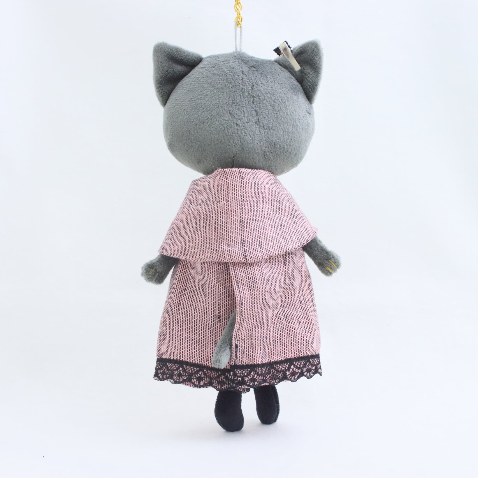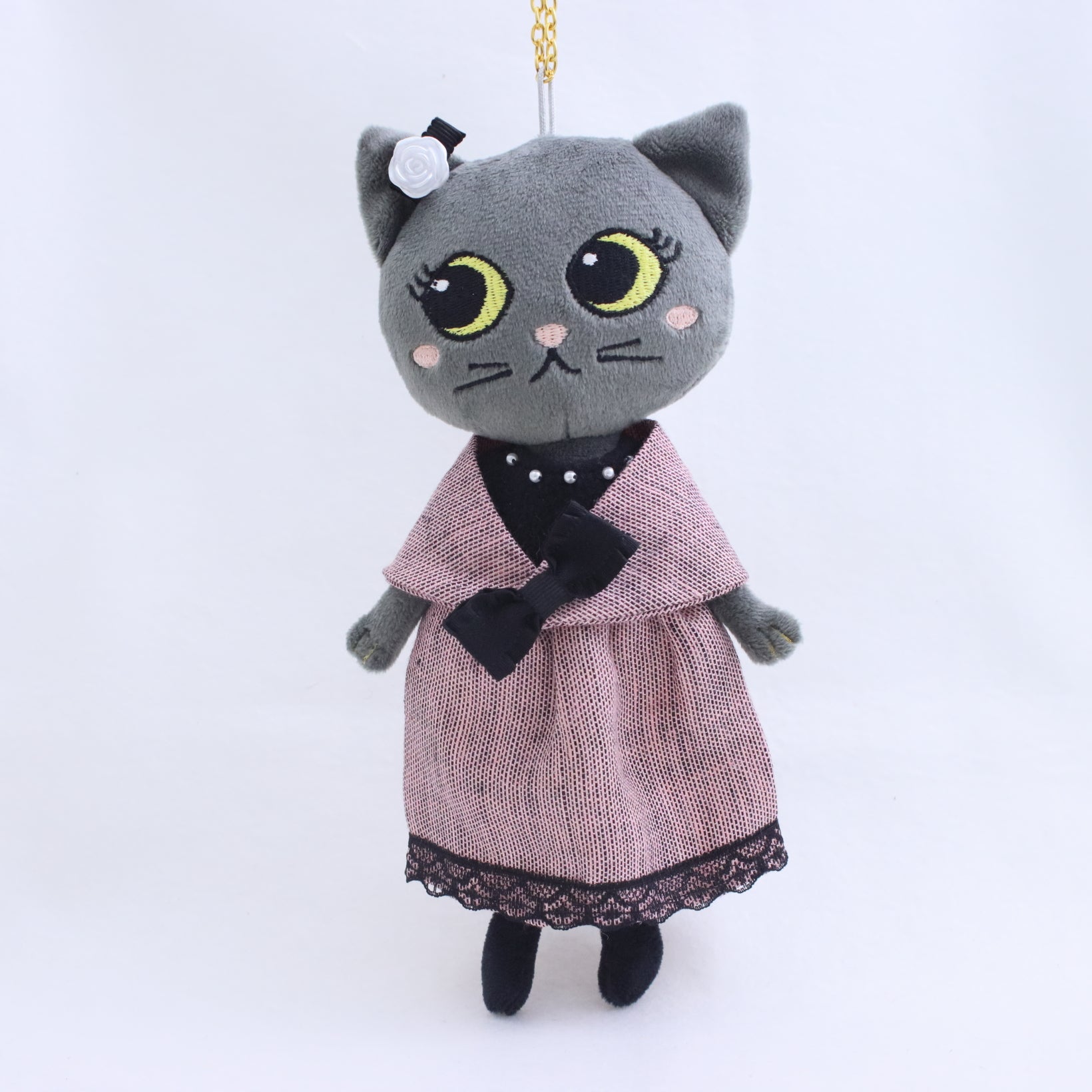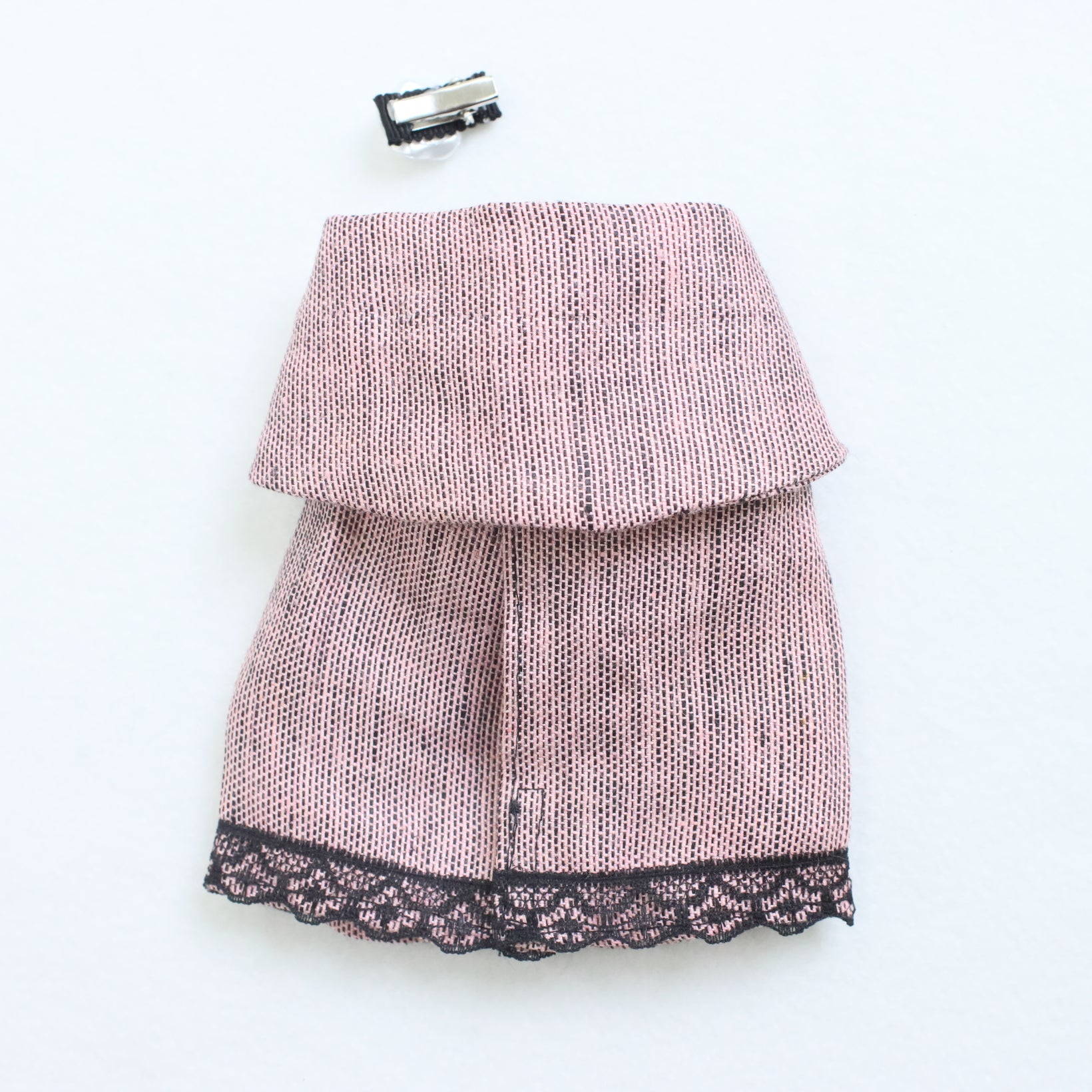 ピンクと黒で大人可愛いおめかしワンピース。首元のパールや裾のレースで上品な印象に。リボンが付いたショールとバラのヘアアクセ付きDETAILS