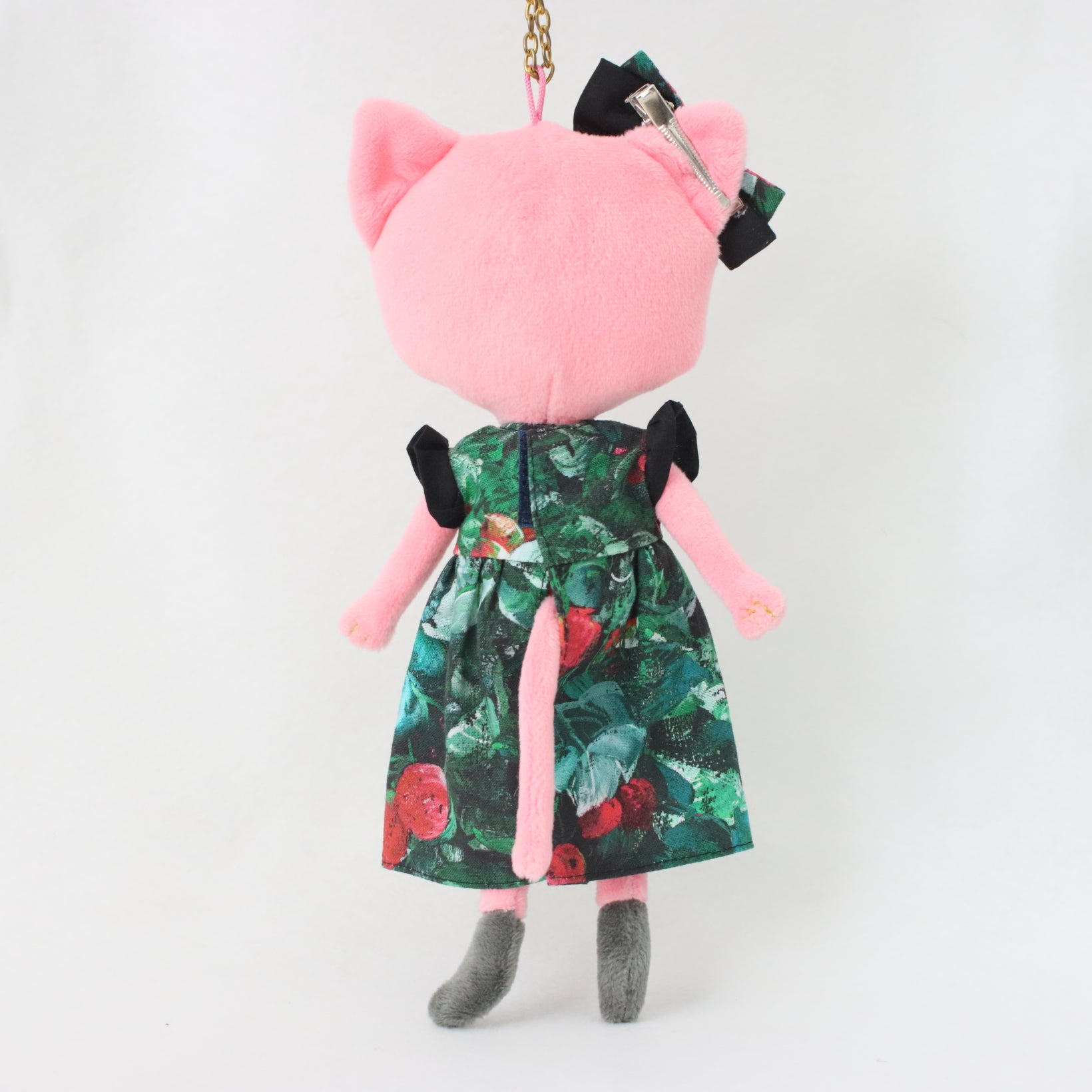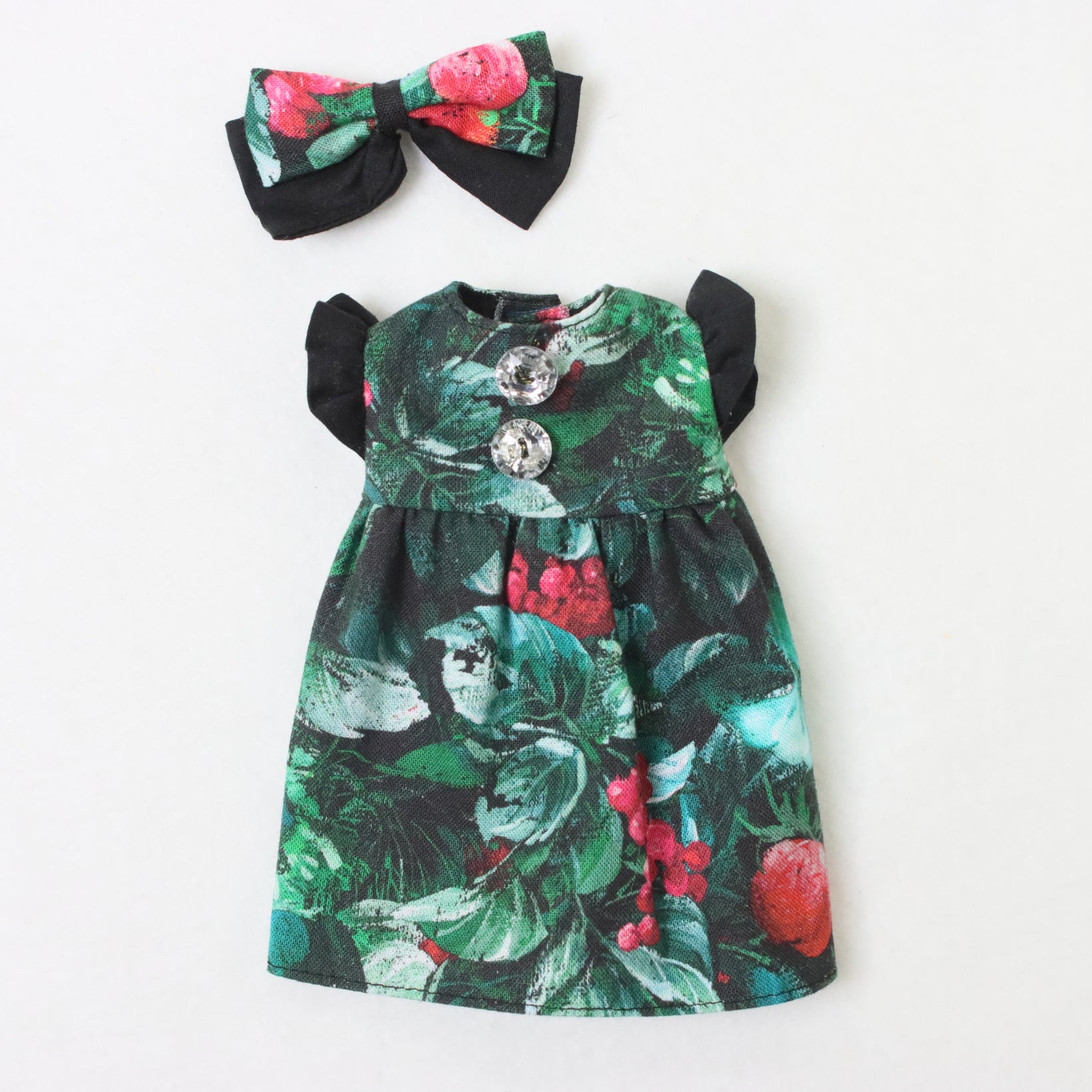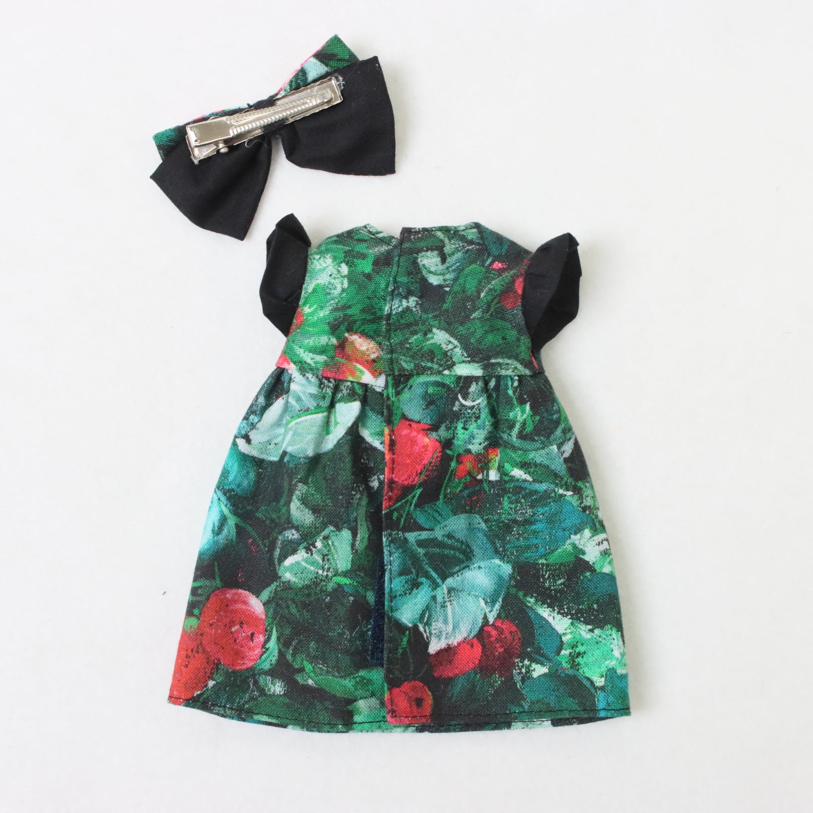 赤と緑のコントラストが素敵なワンピース キラキラボタンがとっても華やか♬お揃いのリボン付き ninoのお洋服とのリンクコーデができる特別なデザインDETAILS