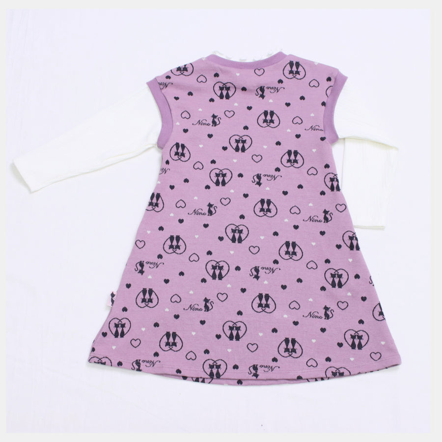 「ninoオリジナル♡ハート&CATジャガードのワンピース」少しレトロで暖かみのある雰囲気を演出してくれます。リブニットやカットソーを重ねる季節も、このワンピース1枚でコーデ完成♪ テレコとのレイヤードデザインがシンプルなのにおしゃれに見せてくれます。ふんわり綿素材で着心地抜群、着脱も簡単。毎シーズン人気の秘密が詰まった一枚です。
