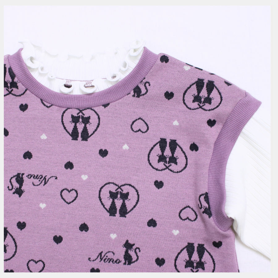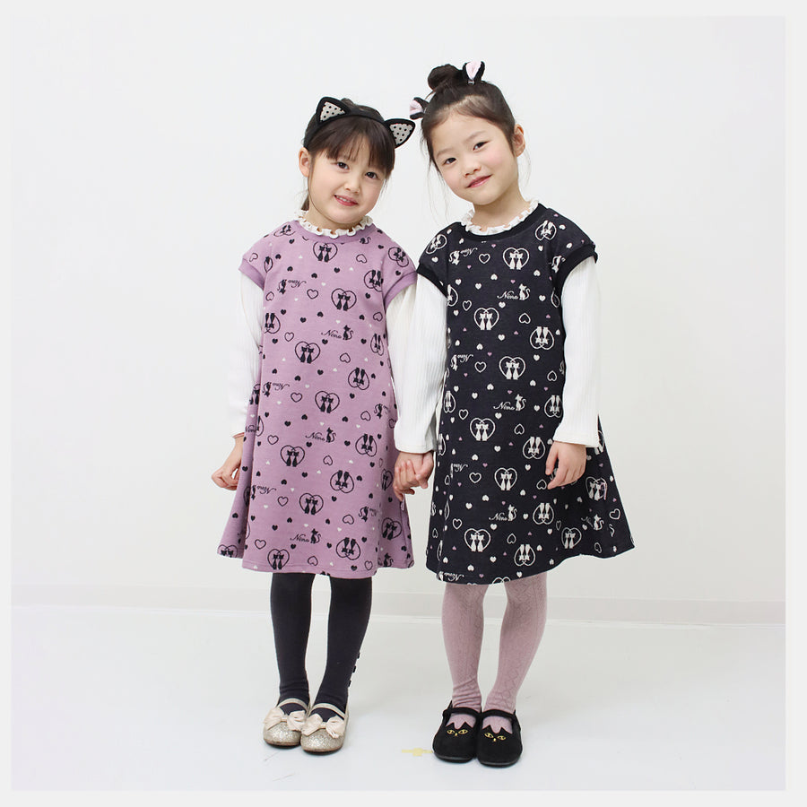 【130cm~140cm】ワンピース|ハート&CAT|ninoオリジナルジャガード生地